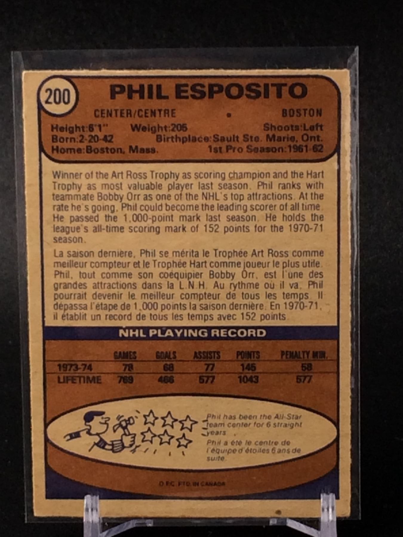 1974-75 OPC NO. 200 PHIL ESPOSITO