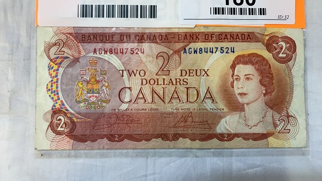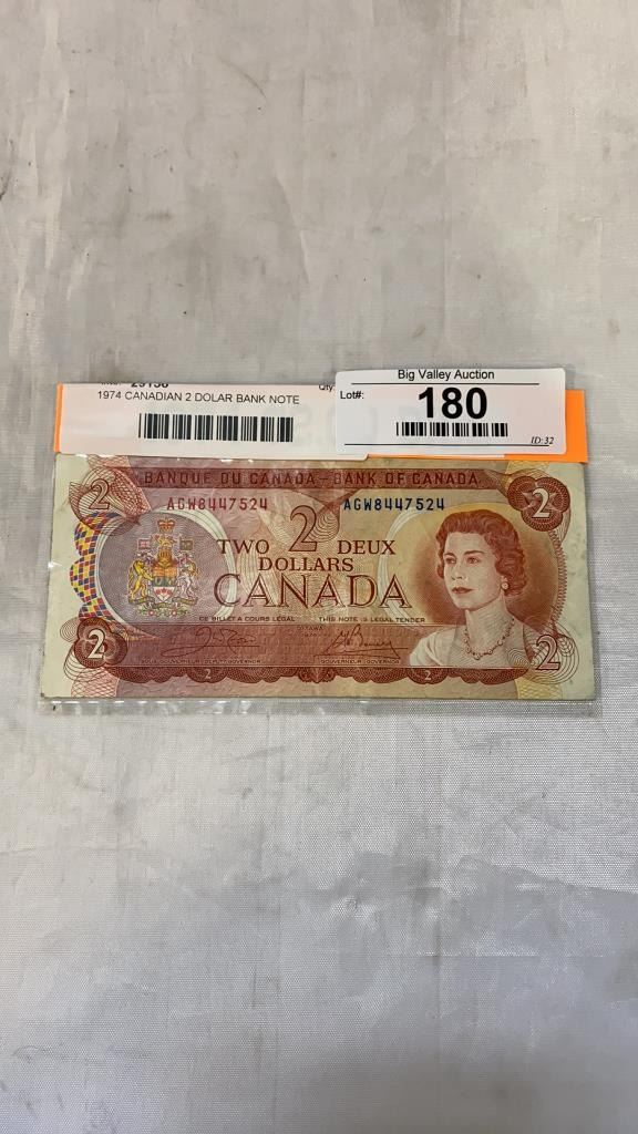 1974 CANADIAN 2 DOLAR BANK NOTE