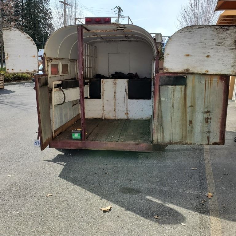 1974 MERHOW ALUMINUM HORSE TRAILER W/ REGISTRATION, TOWS WELL, GOOD TIRES, HAS PASS THROUGH SADDLE R