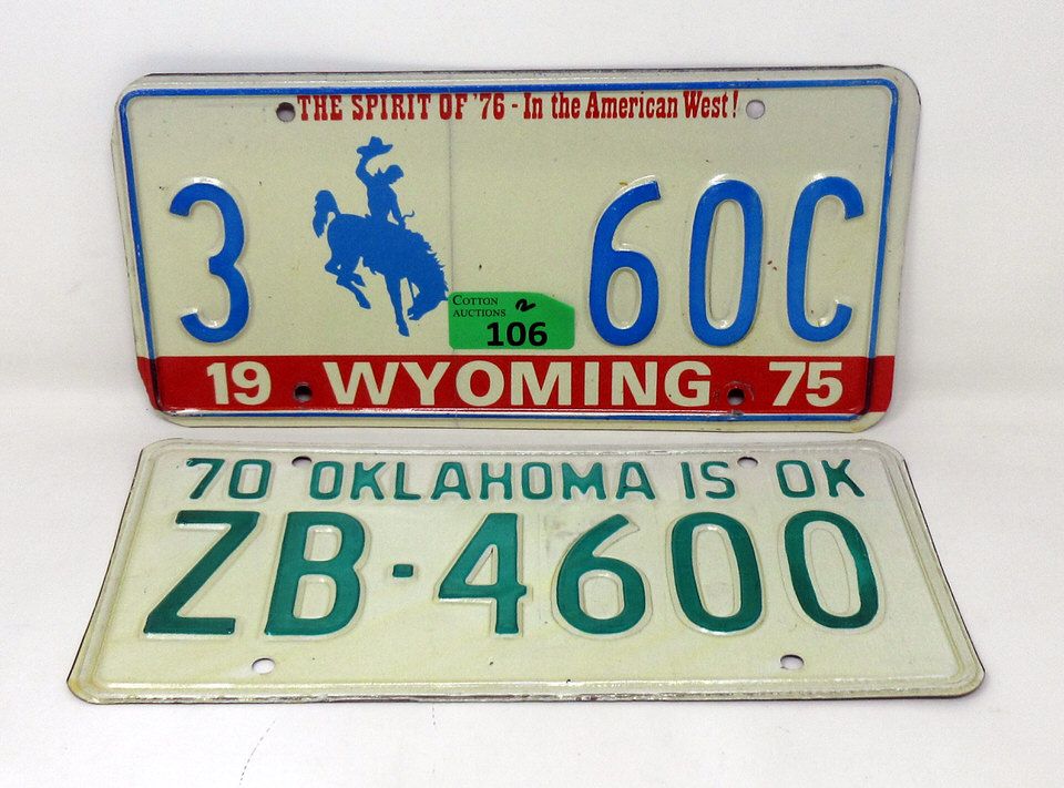 1975 Wyoming & 1970 Oklahoma Licence Plates