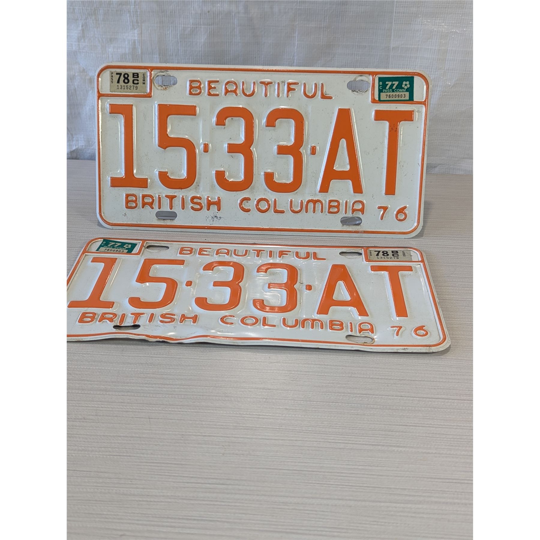 1976 BRITISH COLUMBIA LICENSE PLATE SET