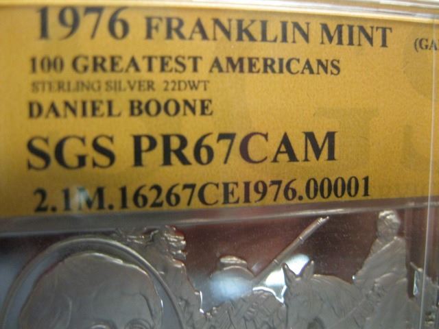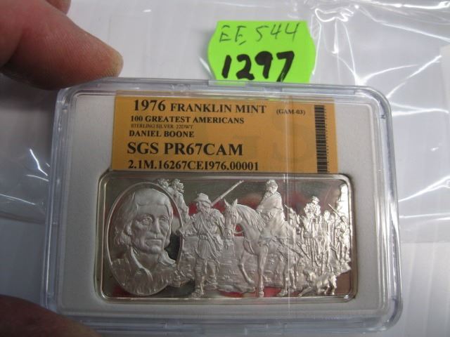 1976 FRANKLIN MINT DANIEL BOONE STERLING SILVER BAR (22WT)