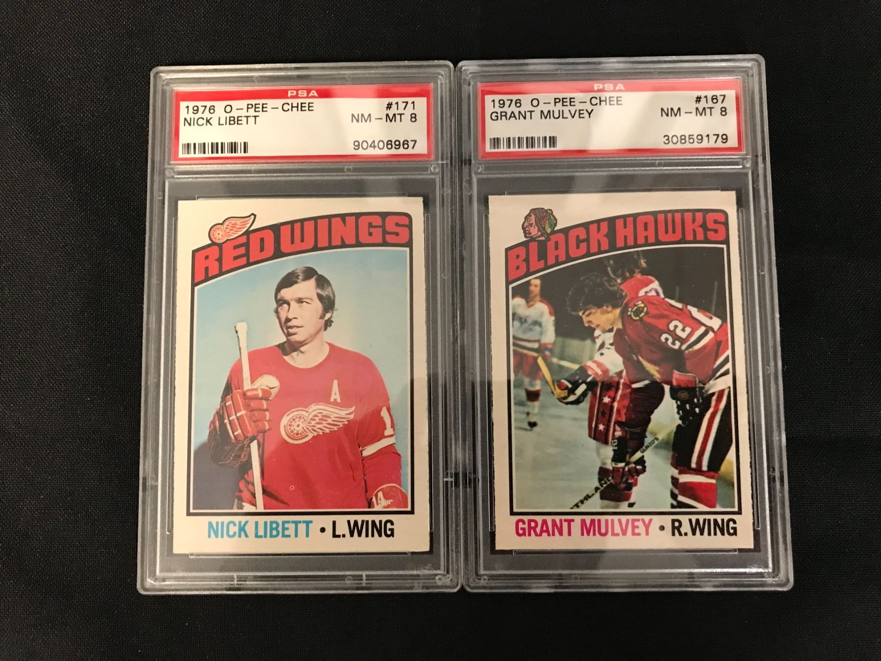 1976 O-PEE-CHEE NM-MT 8 GRADED HOCKEY CARD LOT (#171 LIBETT/ #167 MULVEY)