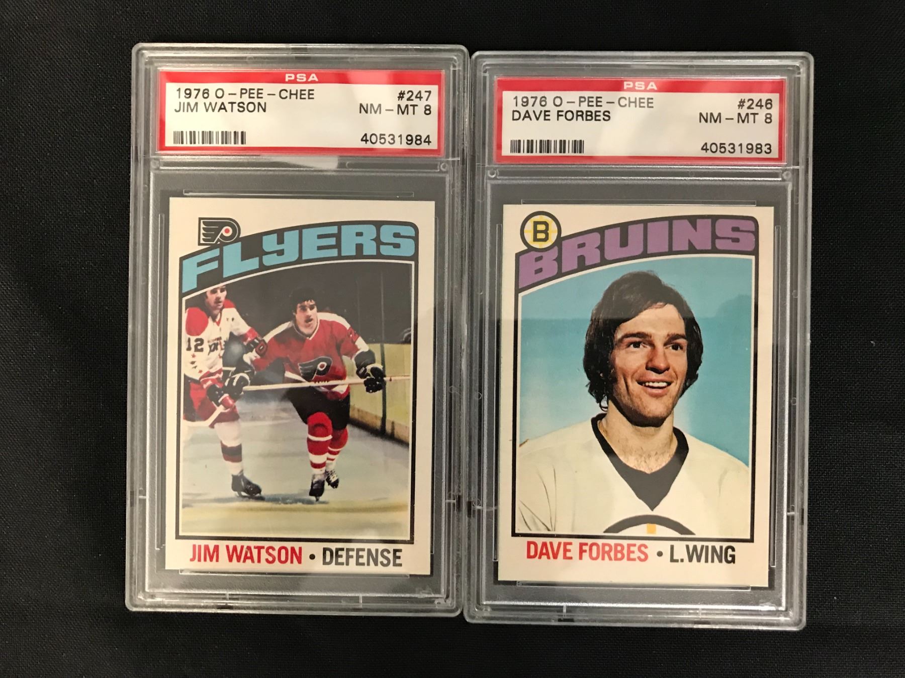 1976 O-PEE-CHEE NM-MT 8 GRADED HOCKEY CARD LOT (#247 WATSON/ #246 FORBES)