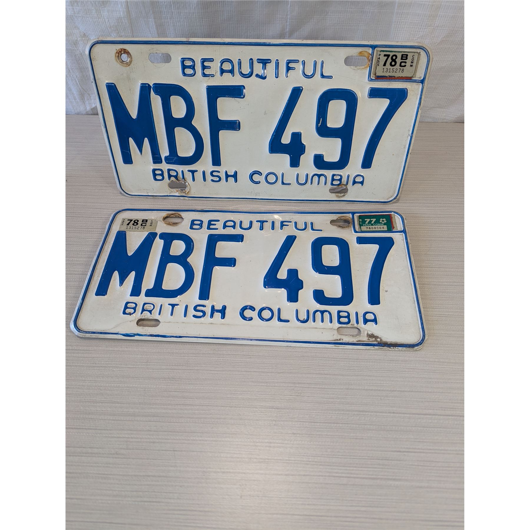 1977 BRITISH COLUMBIA LICENSE PLATE ( Pair)