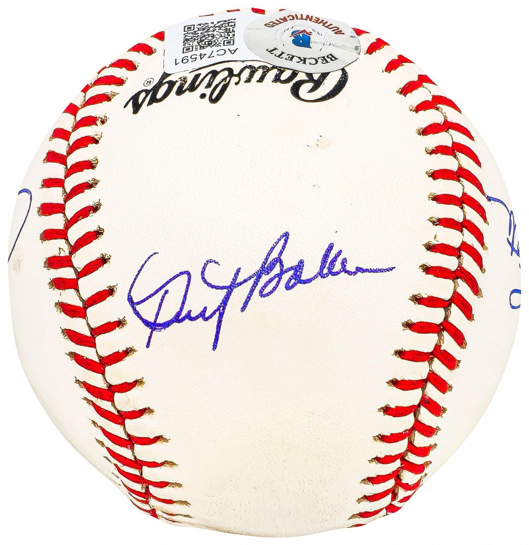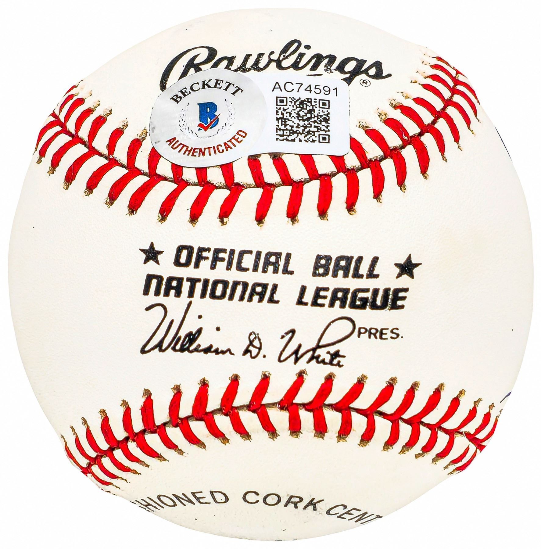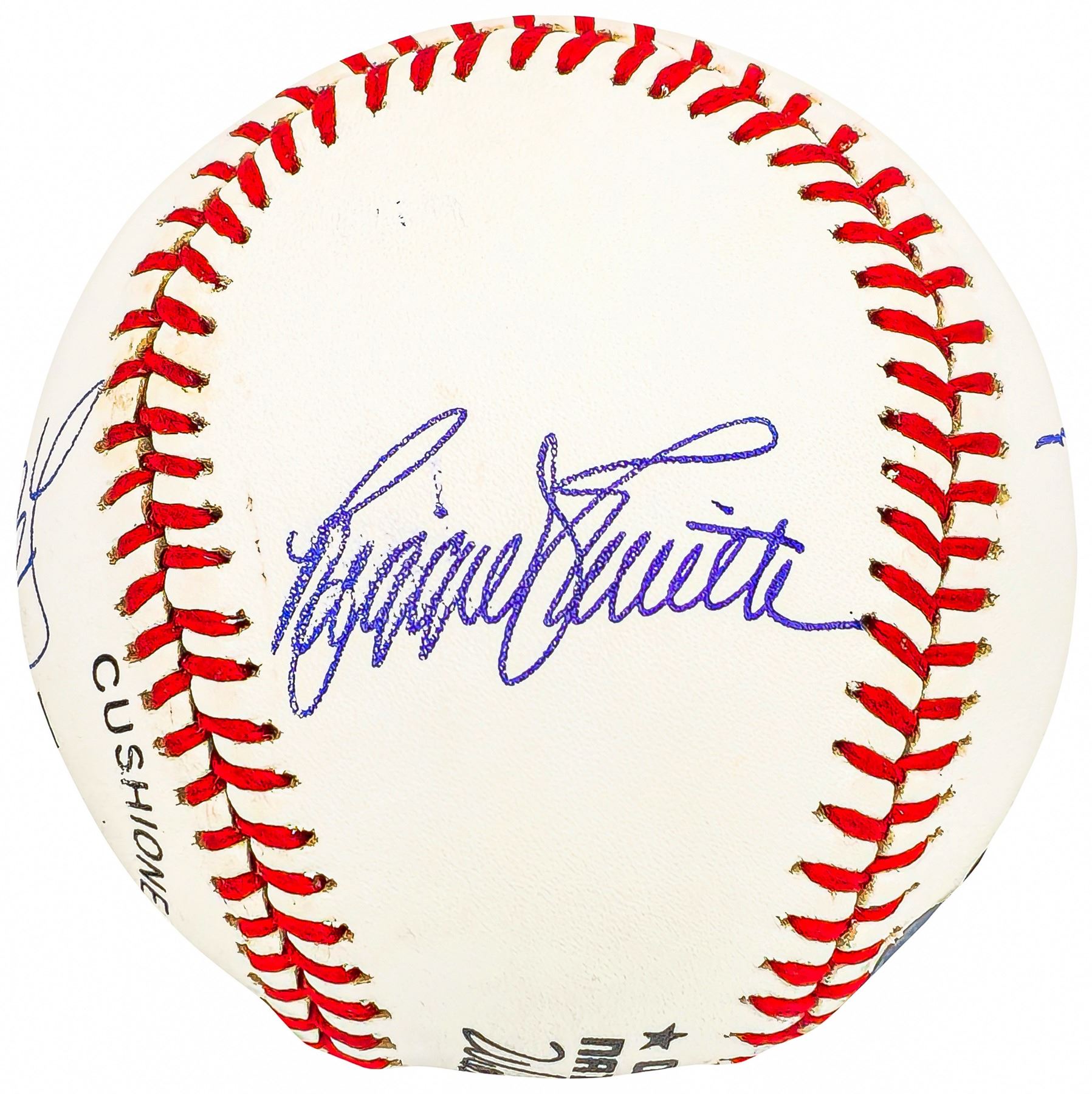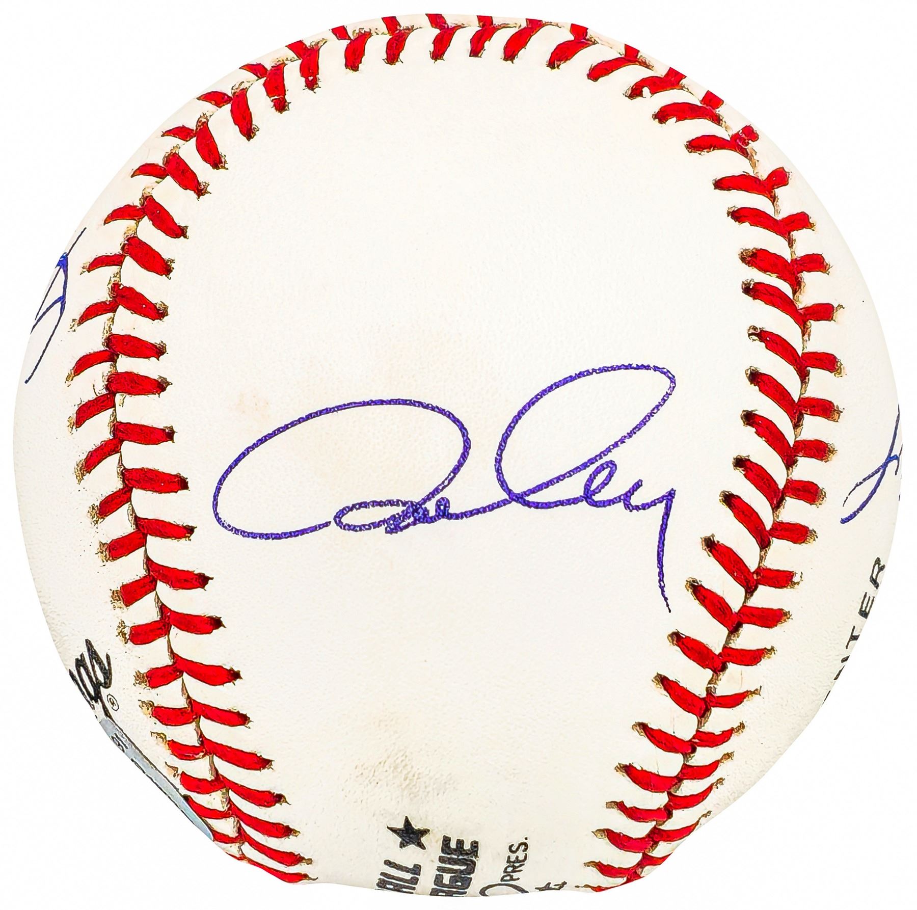 This is an Official National League Baseball that has been hand signed by 1977 Los Angeles Dodgers 30 Home Run Club: Steve Garvey, Ron Cey, Reggie Smith, and Dusty Baker