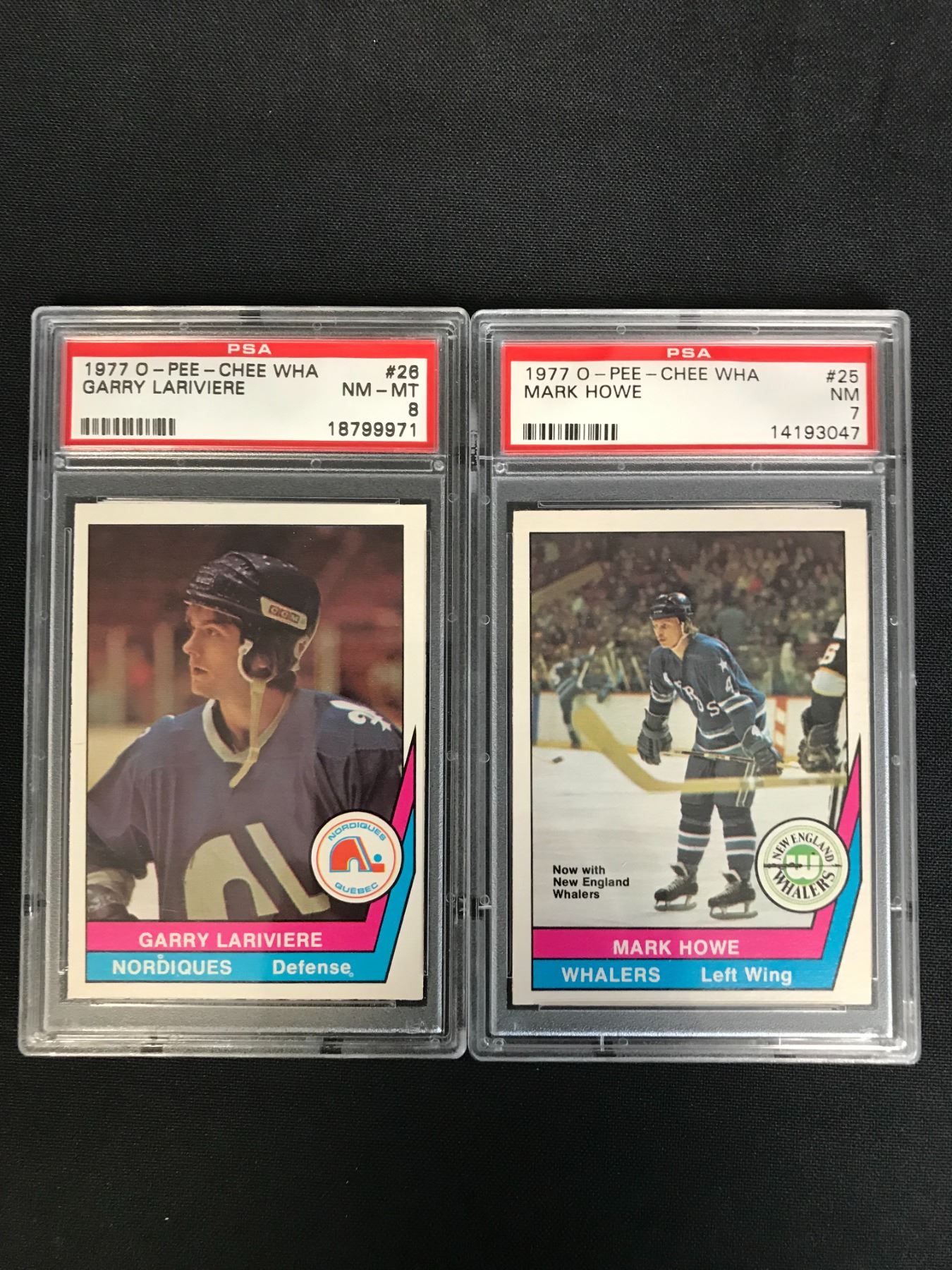 1977 O-PEE-CHEE WHA GRADED HOCKEY CARD LOT (#26 G. LARIVIERE/ #25 MARK HOWE)