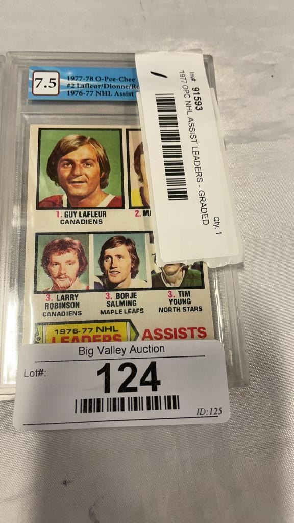 1977 OPC NHL ASSIST LEADERS CARD - GRADED 7.5 AND 2021 UPPER DECK SERIES 1 #EM-1 MAXIME COMTOIS ELEC