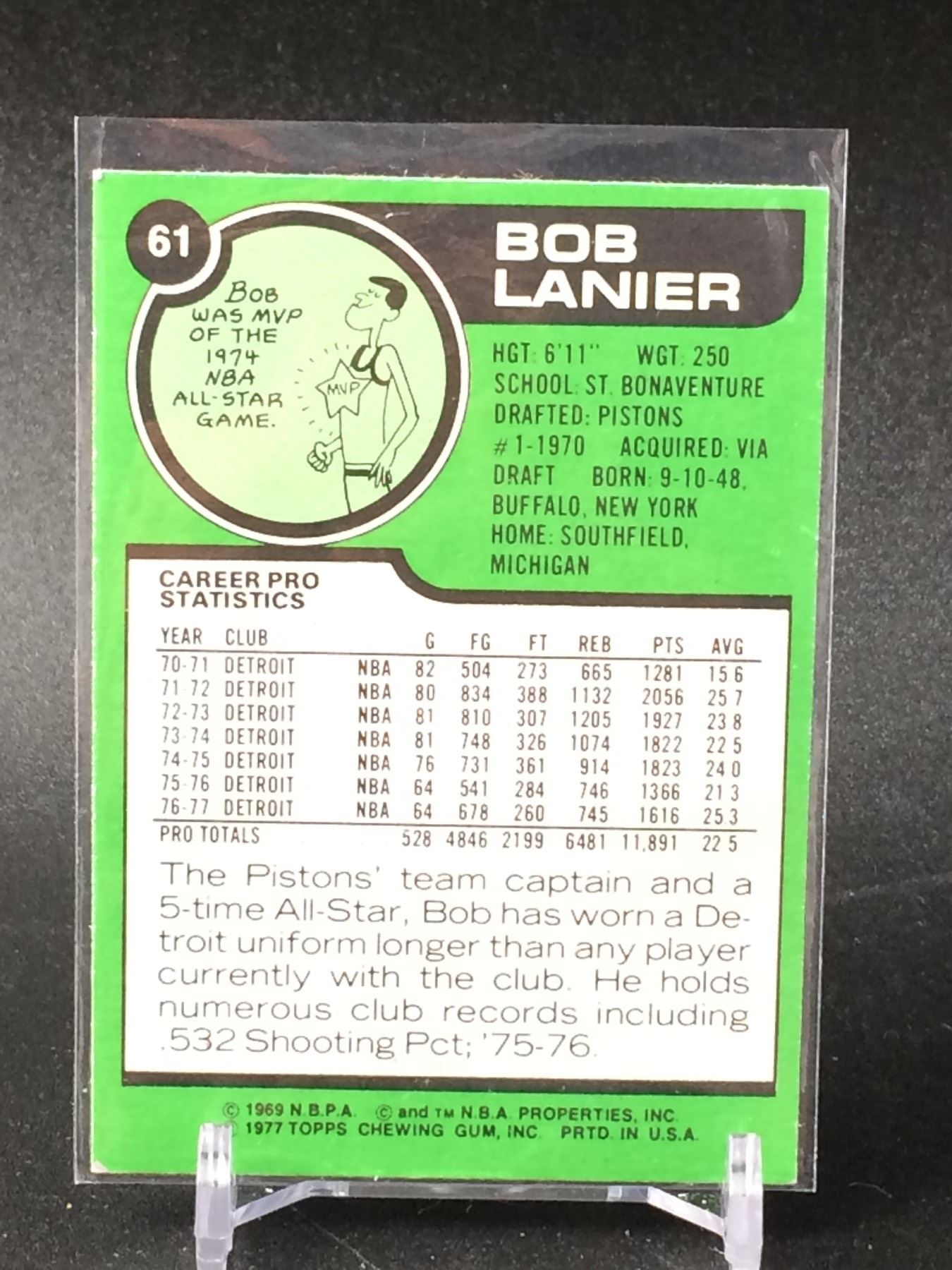 1977 TOPPS NO. 61 BOB LANIER PISTONS