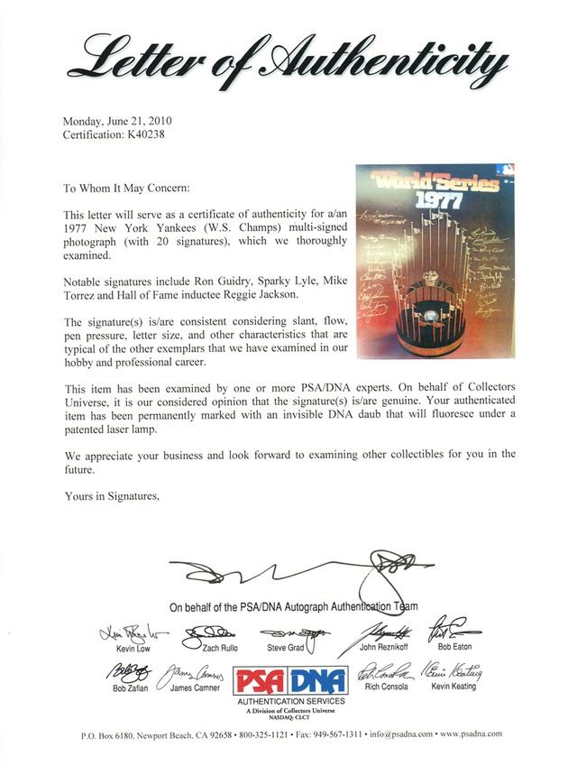 REGGIE JACKSON PSA COA