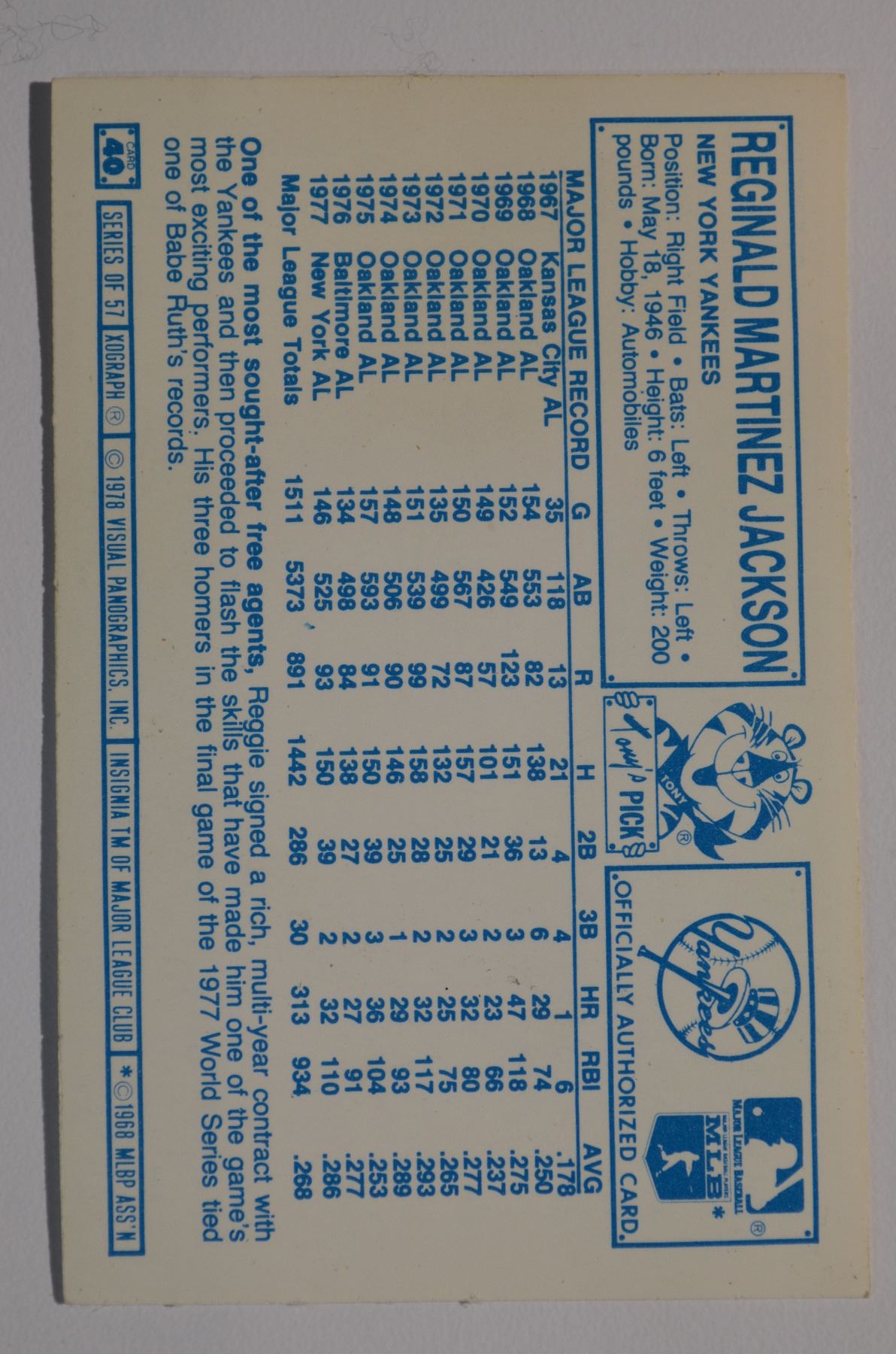 1978 Kellogg's #40 Reggie Jackson