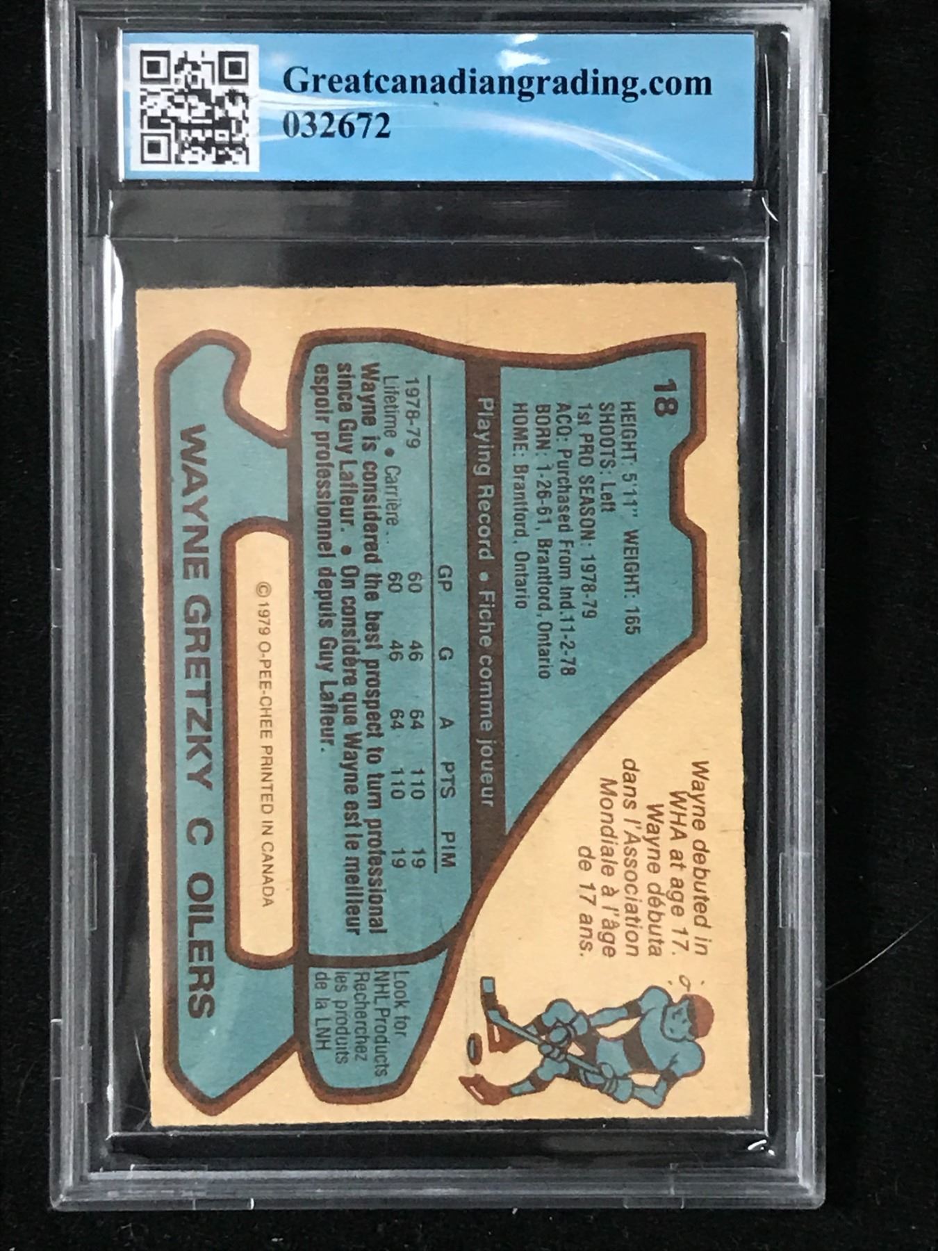 1979-80 O-PEE-CHEE NO.18 WAYNE GRETZKY ROOKIE CARD GCG GRADED 6