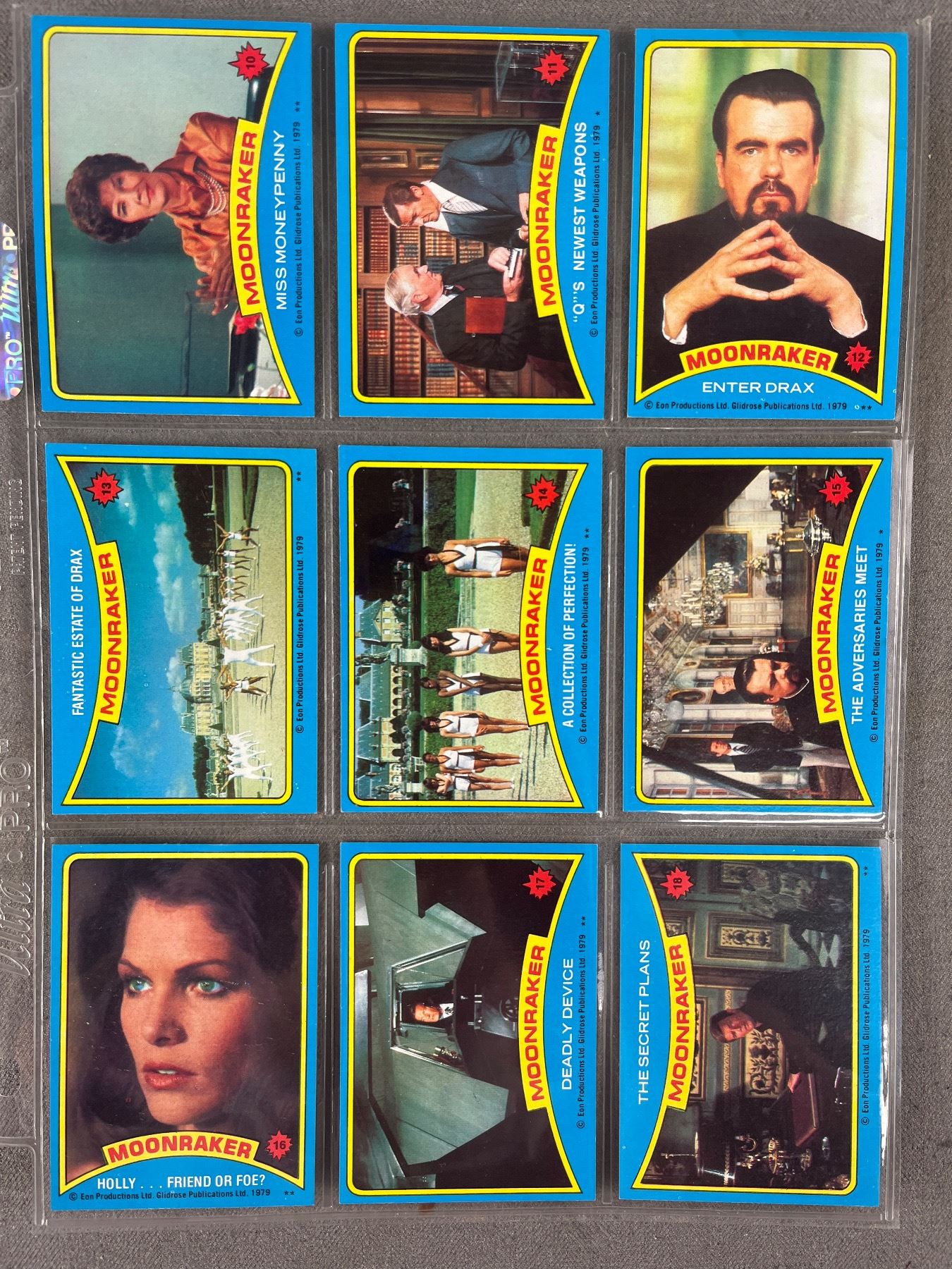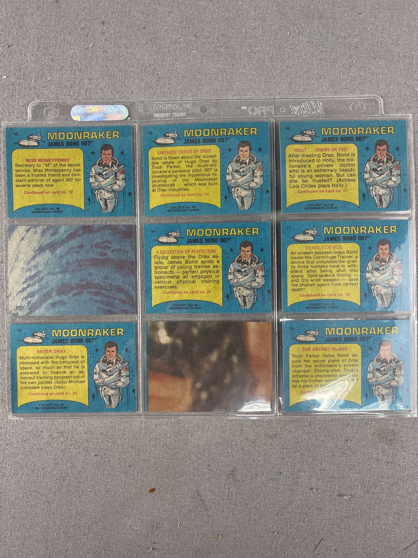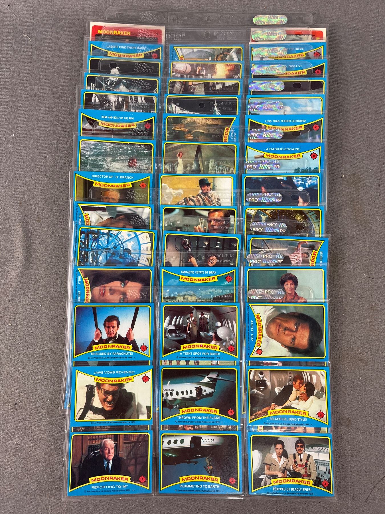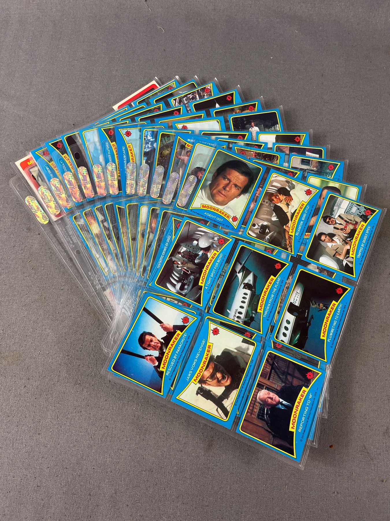 1979 James Bond "Moonraker" Collector Cards #1-99 (COMPLETE SET) Plus a Few Stickers In Protector Sheets