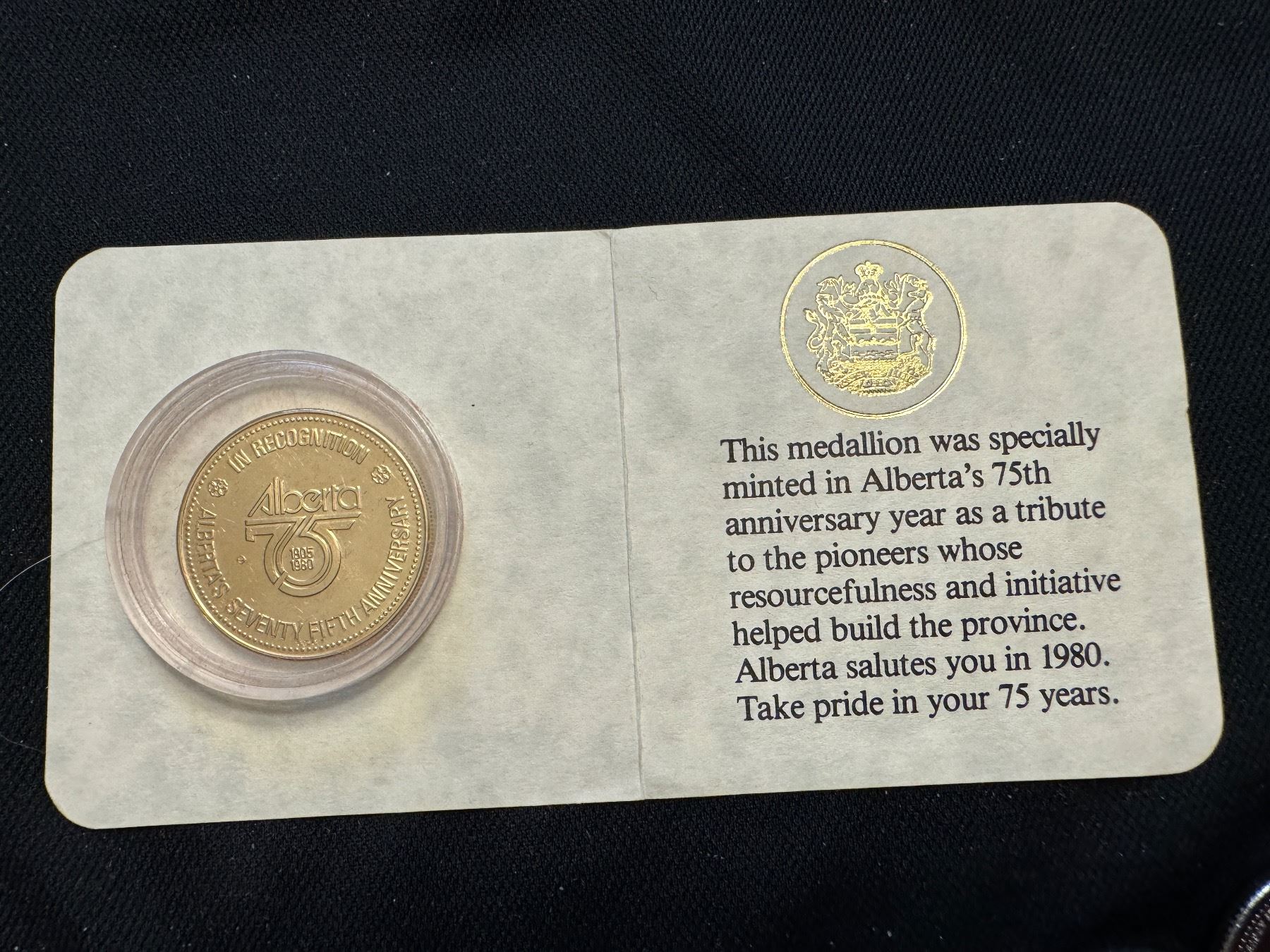 1980 ALBERTA 75TH ANNIVERSARY GOLD COMMEMORATIVE COIN , BAG OF CALGARY STAMPEDE DOLLARS