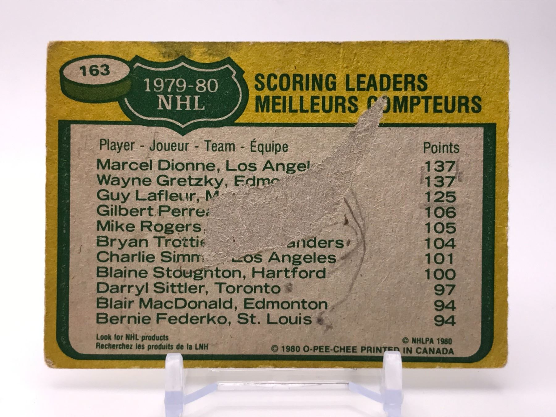 1980 O-PEE-CHEE NO.163 DIONNE,GRETZKY,LAFLEUR SCORING LEADERS