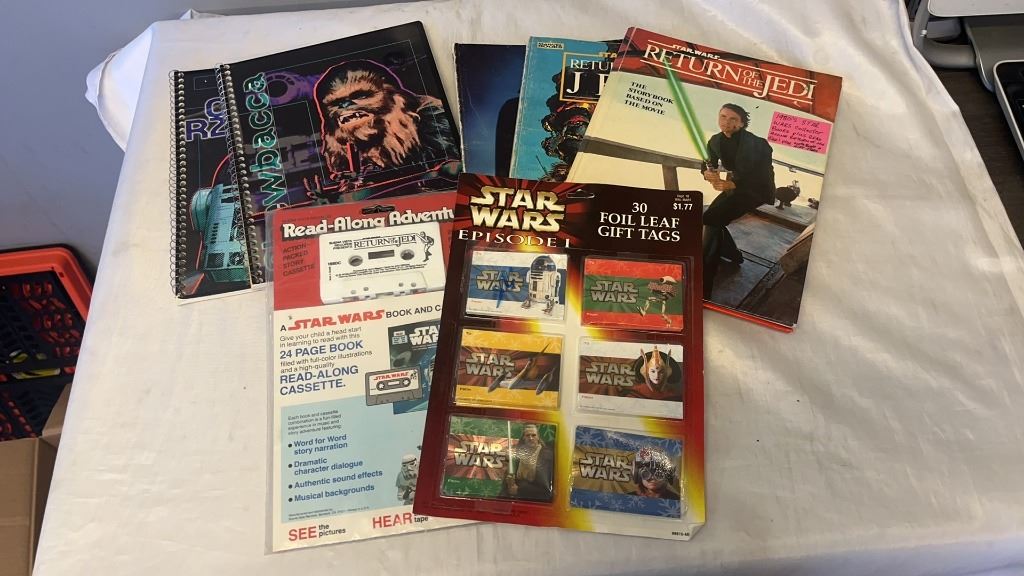 1980'S STARWARS COLLECTOR BOOKS PLUS READ ALONG 'RETUEN OF THE JEDI' WITH NOTEBOOKS AND GIFT TAGS