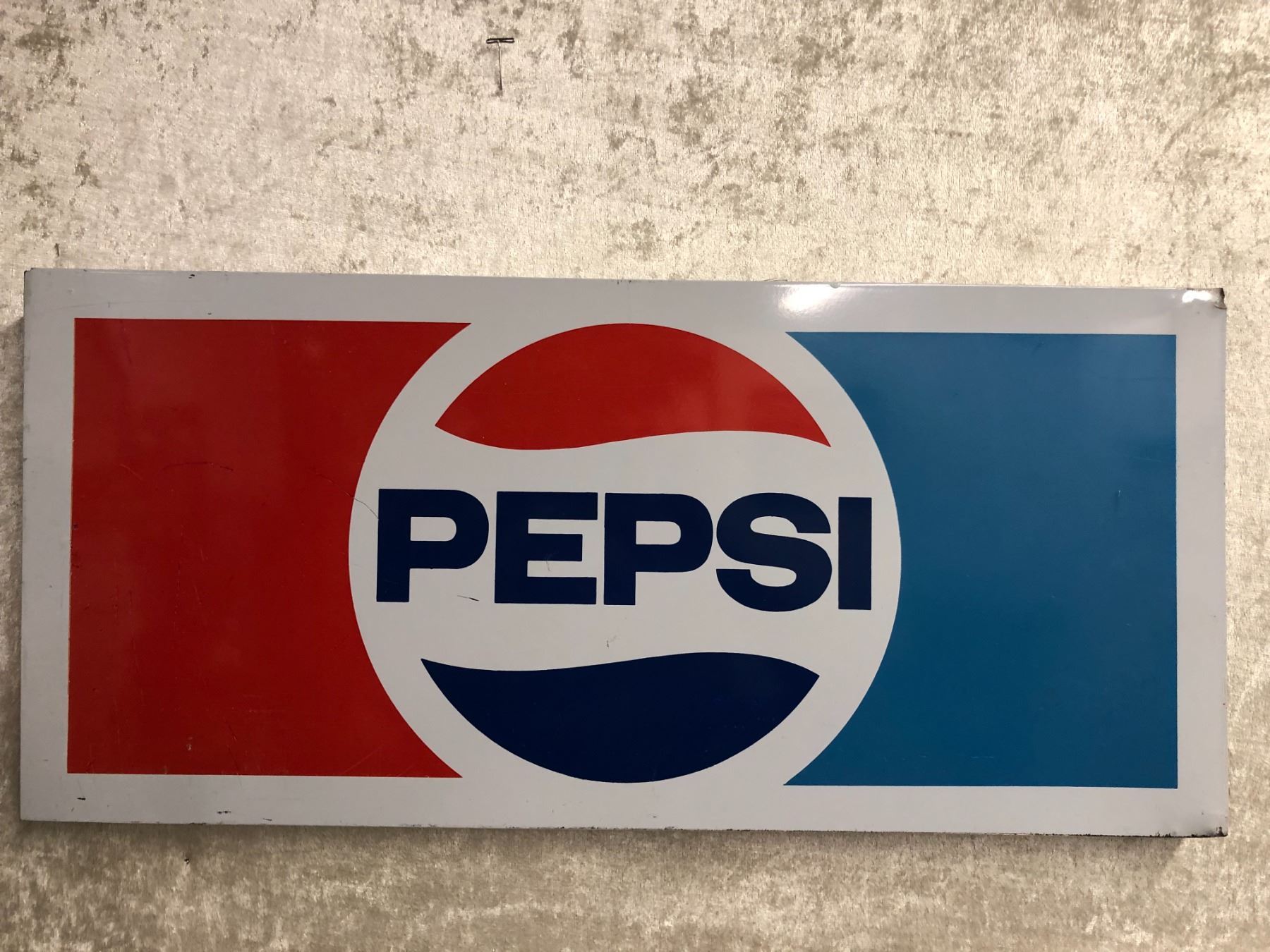 1980's/90's Pepsi metal advertisement sign (approx. 22in x 10in)