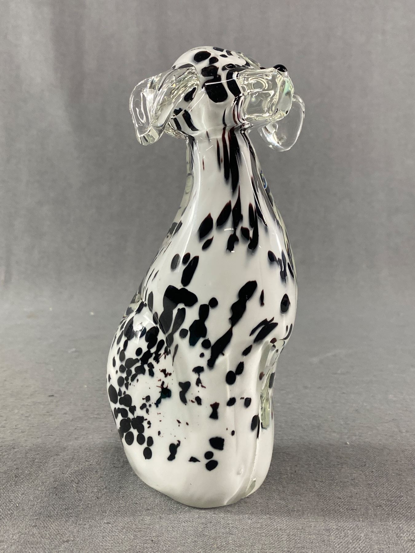 1980s Murano Style Artt Glass Dalmation Sculpture Clear Ears, Muzzle and Tail- approx 7" tall