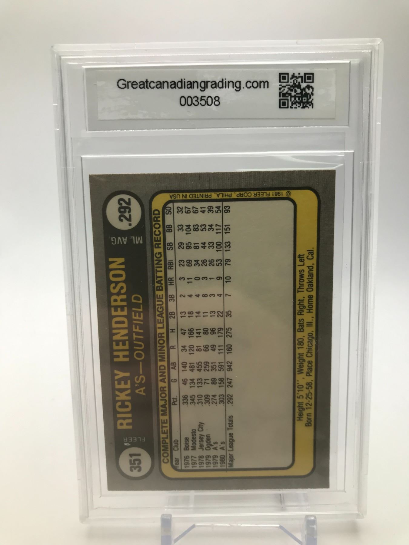 1981 FLEER NO.351 RICKEY HENDERSON GCG GRADED 9