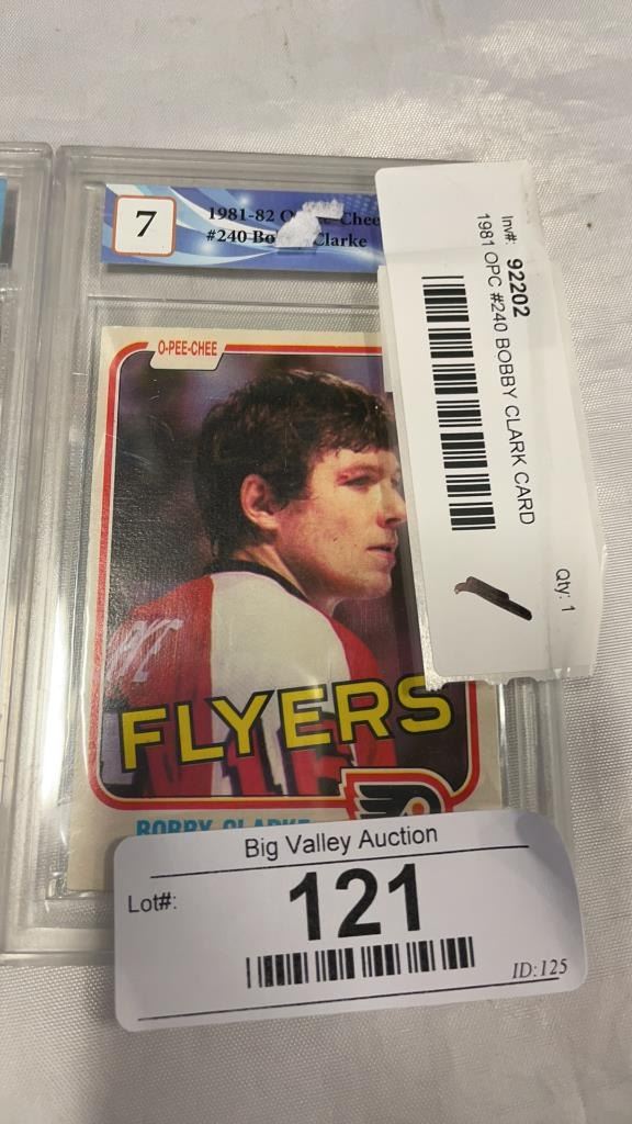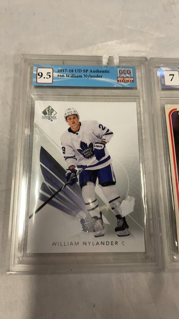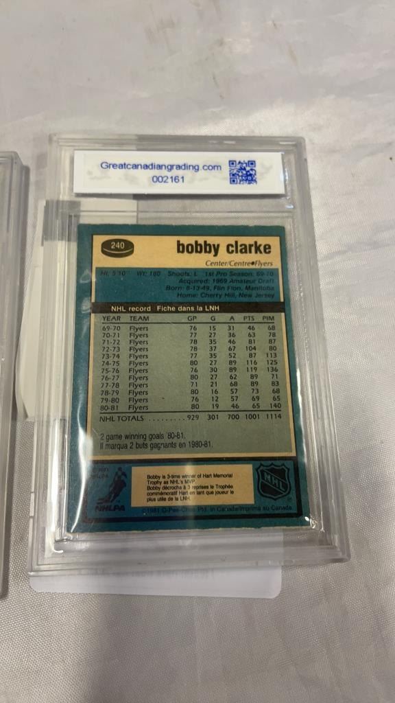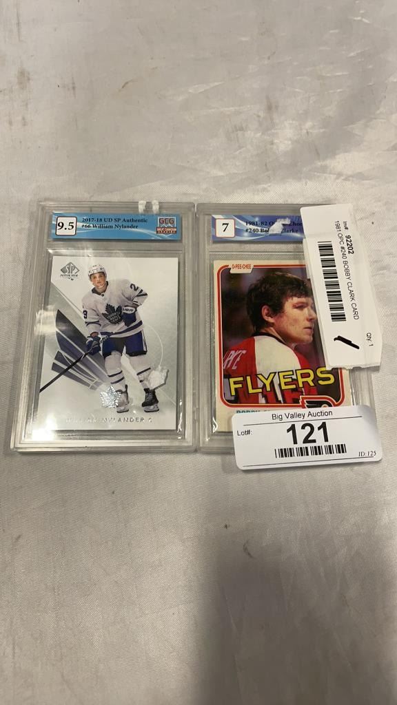 1981 OPC #240 BOBBY CLARK CARD GRADED 7 AND 2017 UD SP AUTHENTIC #66 WILLIAM NYLANDER CARD GRADED 9.5
