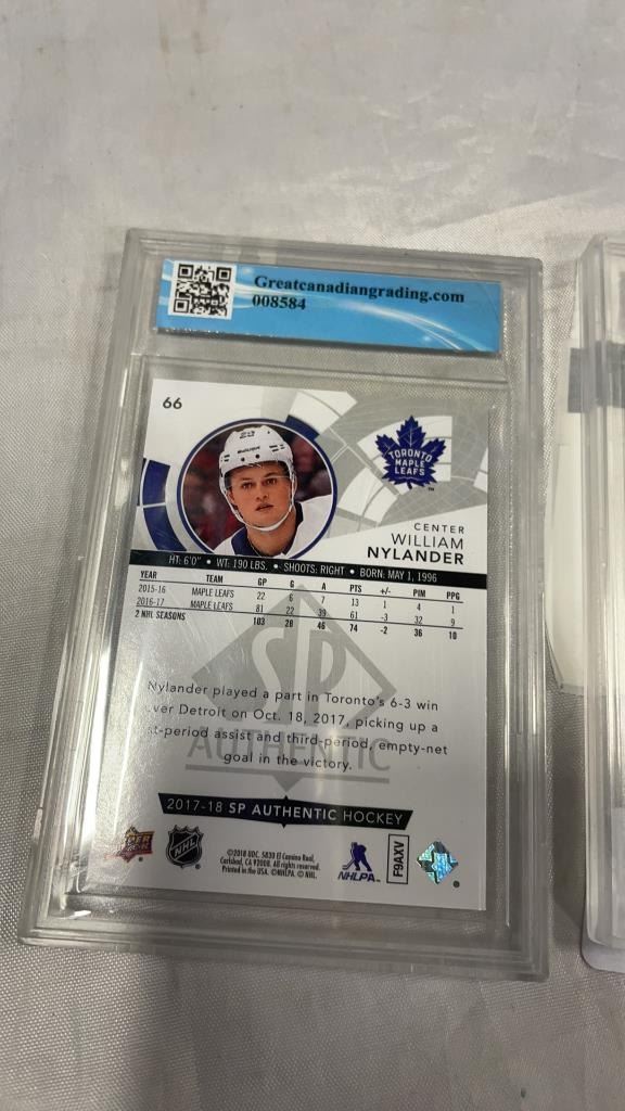 1981 OPC #240 BOBBY CLARK CARD GRADED 7 AND 2017 UD SP AUTHENTIC #66 WILLIAM NYLANDER CARD GRADED 9.