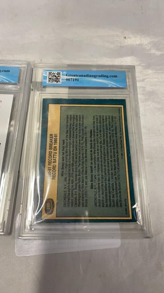 1981 OPC #390 MIKE BOSSY RECORD BREAKER CARD GRADED 7.5 AND 2021 UPPER DECK SERIES 1 #EM-30 NICKLAS