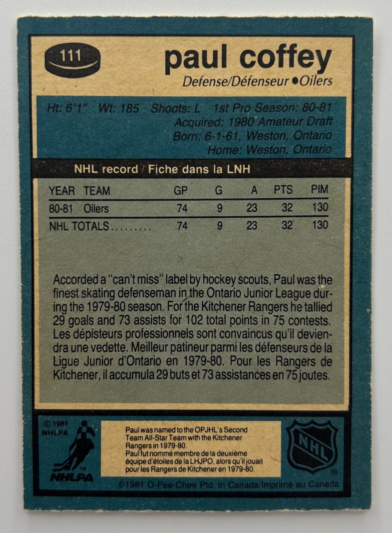 1981 O-Pee-Chee Paul Coffey Rookie #111