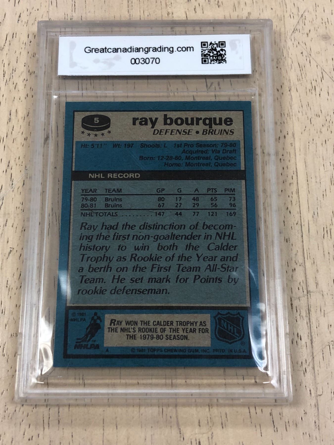 1981 Topps #5 Ray Bourque Boston Bruins NHL collectible trading card