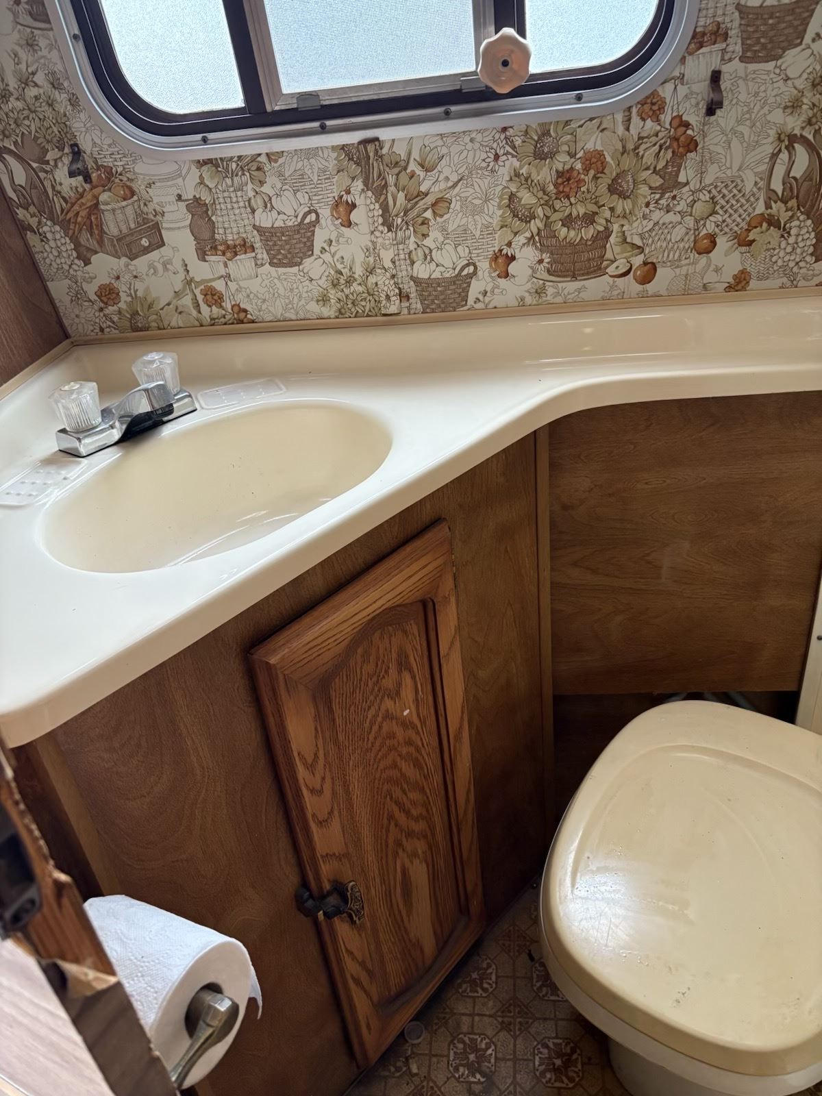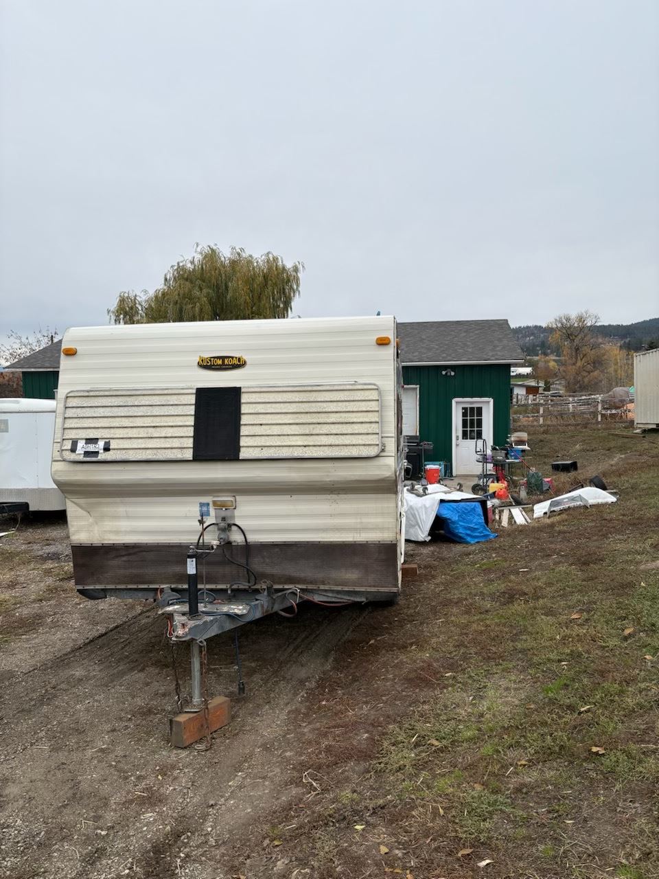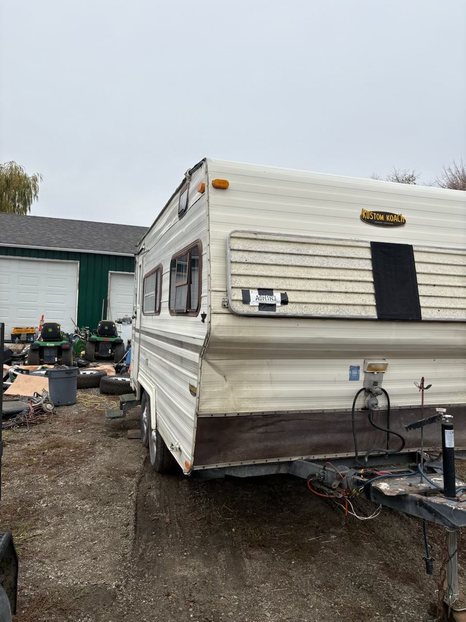1982 Kustom Koach Travel trailer 15ft long 18ft with hitch c/w Equializer, hitch, toilet, LAV, Shower tires are good