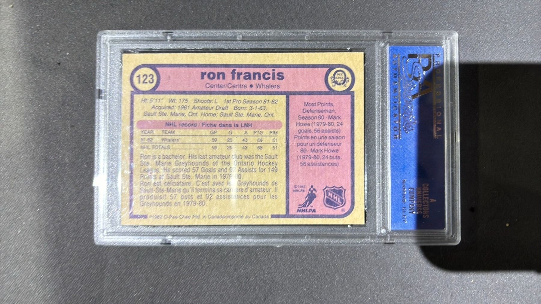 1982 O-PEE-CHEE RON FRANCIS RC #123, PSA GRADED - 8NM-MT 11324824