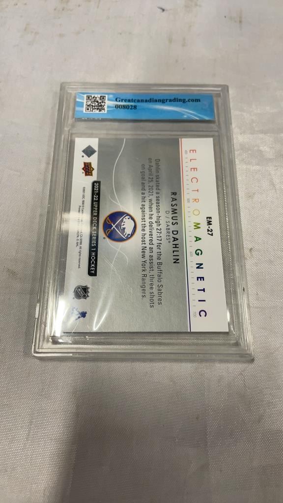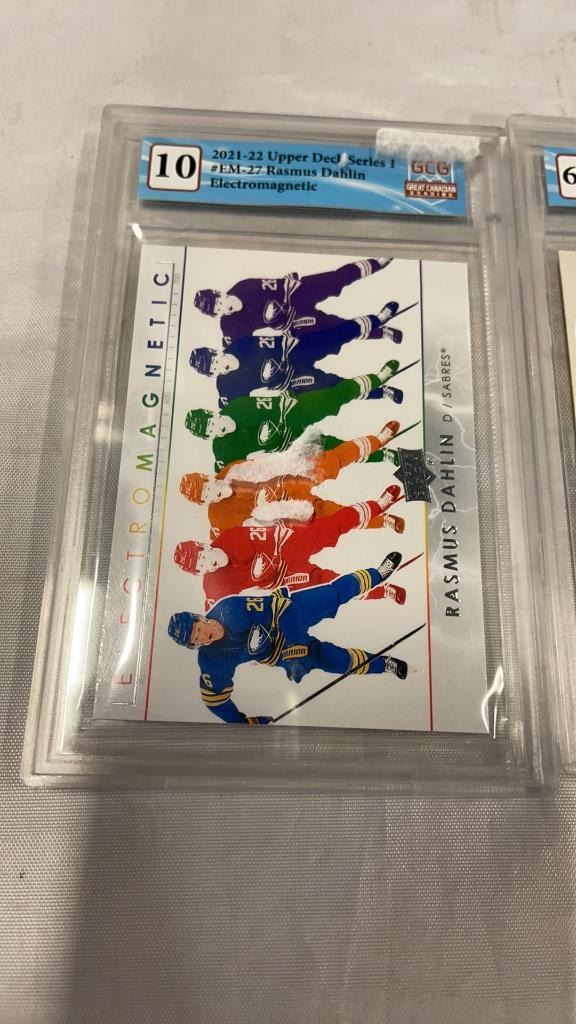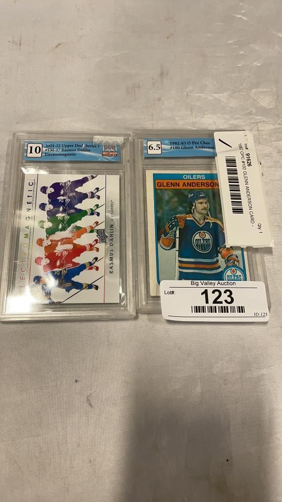 1982 OPC #100 GLENN ANDERSON CARD - GRADED 6.5 AND 2021 UPPER DECK SERIES 1 #EM-27 RASMUS DAHLIN ELECTROMAGNETIC CARD GRADED 10