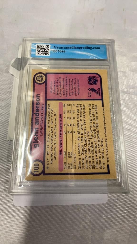 1982 OPC #100 GLENN ANDERSON CARD - GRADED 6.5 AND 2021 UPPER DECK SERIES 1 #EM-27 RASMUS DAHLIN ELE
