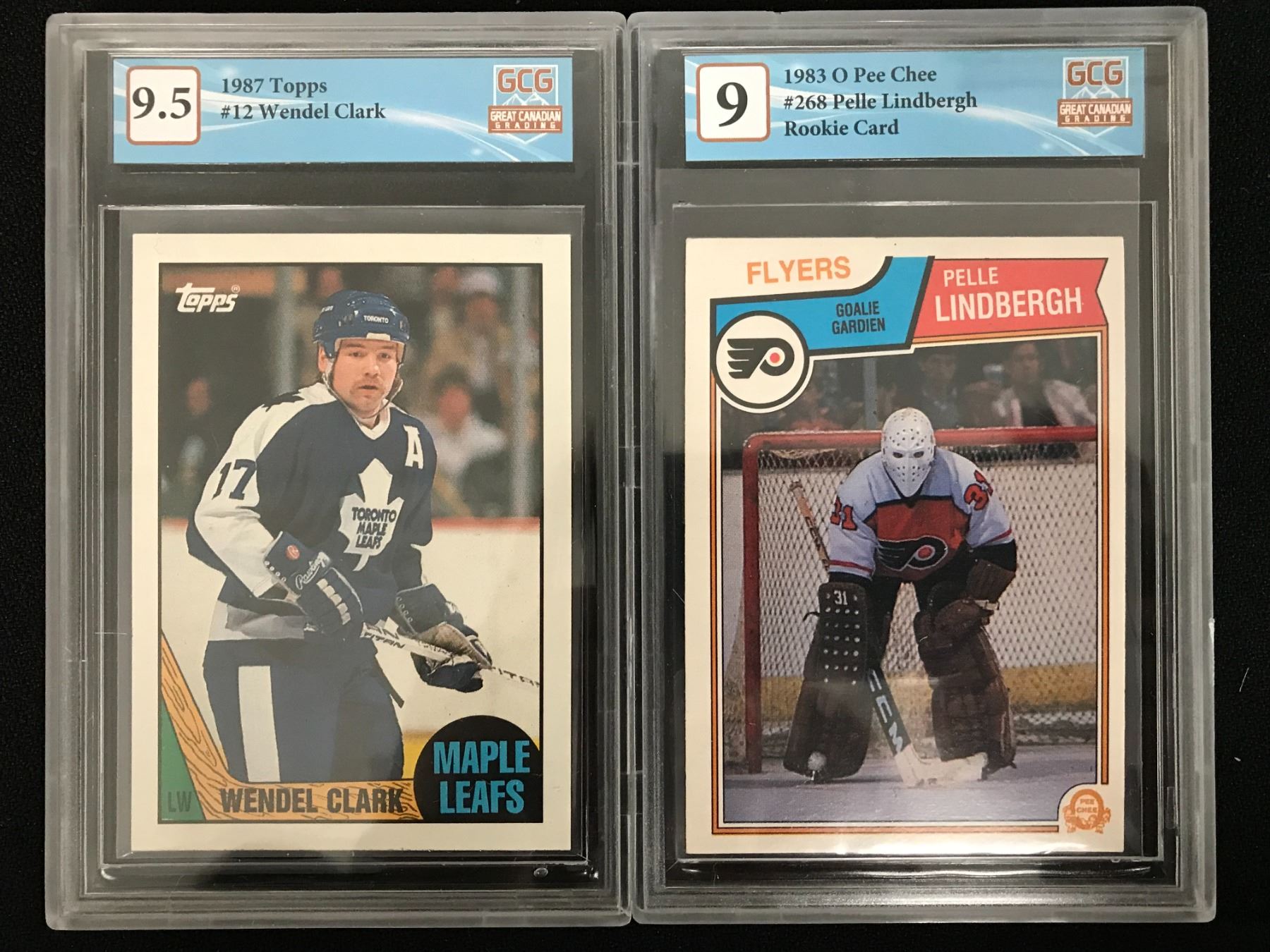 1983 O-PEE-CHEE #268 PELLE LINBERGH RC CARD AND 1987 TOPPS #12 WENDEL CLARK GCG GRADED 9 AND 9.5