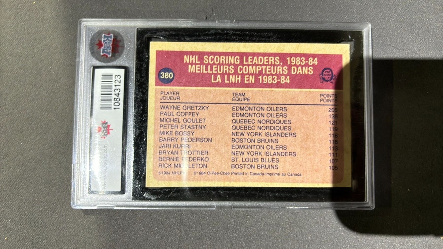 1984-1985 O-PEE-CHEE WAYNE GRETZKY SCORING LEADER 380, KSA GRADED - 7.5 MINT
