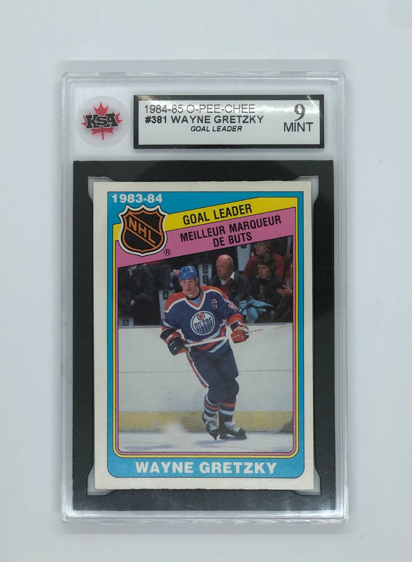 1984-85 O-PEE-CHEE #381 Wayne Gretzky (Goal Leader) - Graded 9 (Mint) by KSA Grading