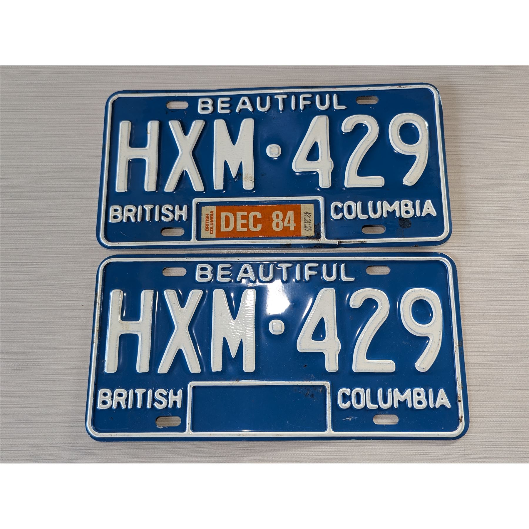 1984 BC License Plate. Very clean matched set just ready for your restored Ferrari Testarossa or Lamborghini Countach:)
