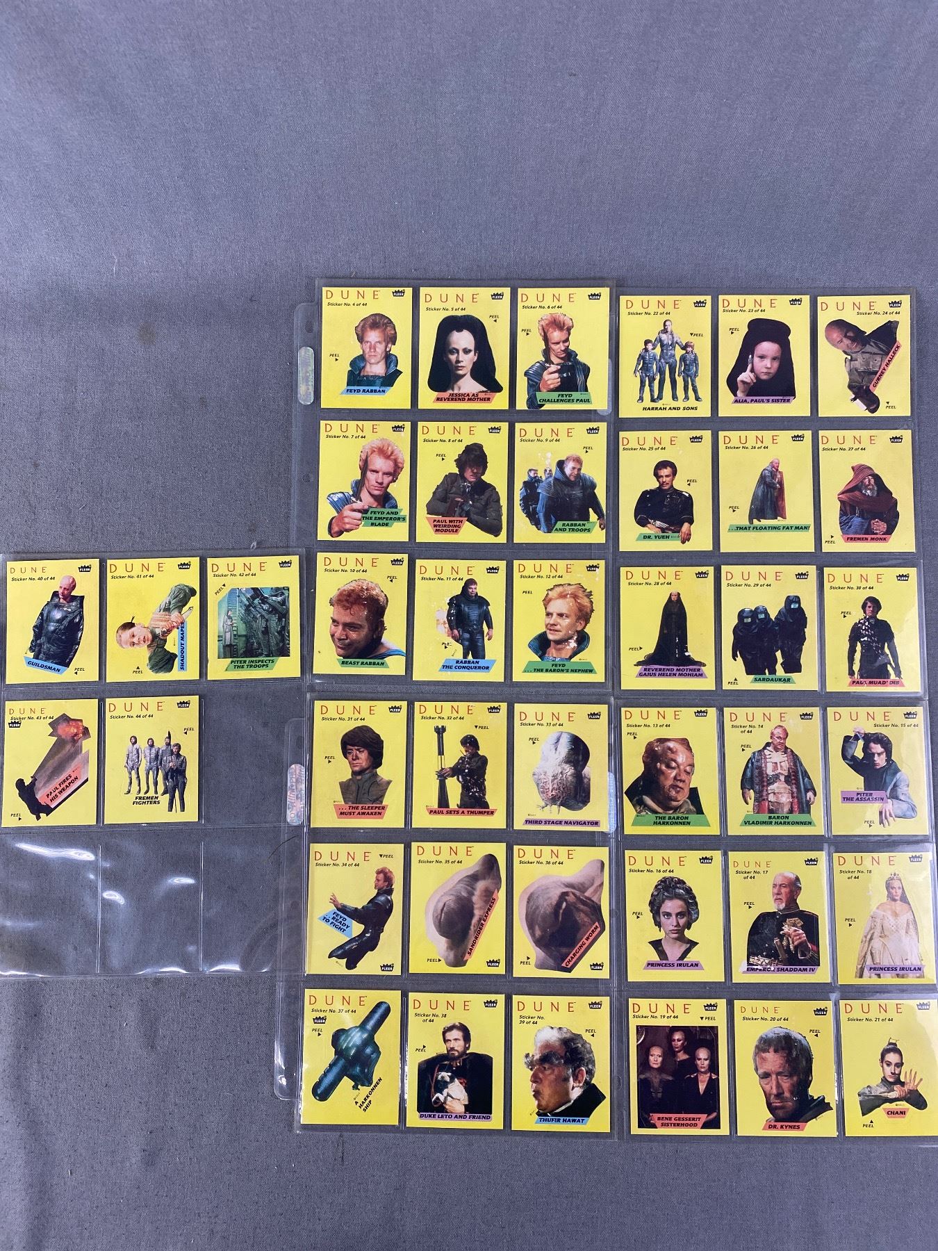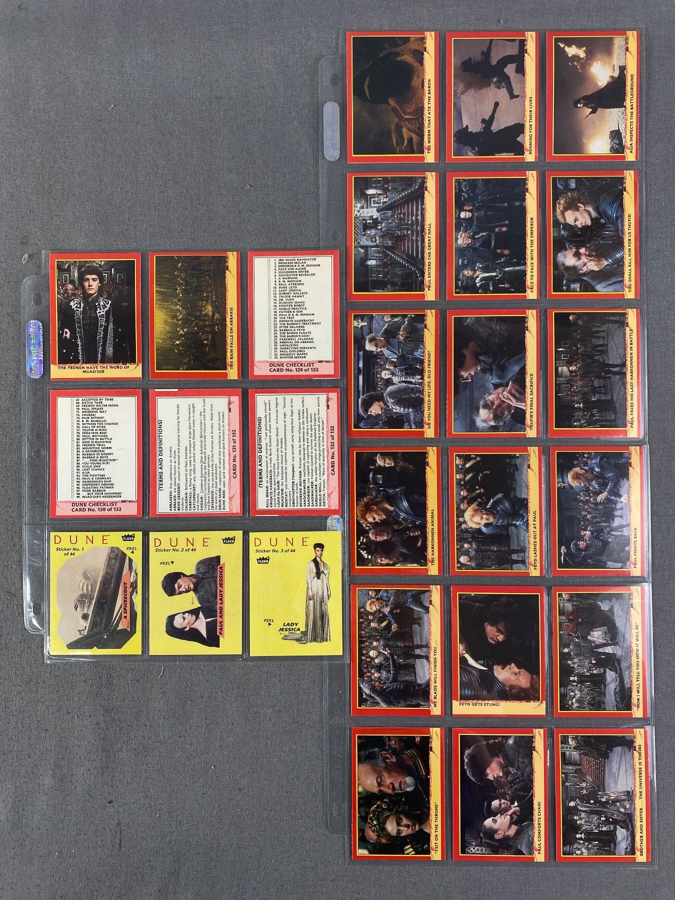 1984 Fleer "Dune" Collector Cards & Stickers. COMPLETE SET 1-132 & 1-44. In Protector Card Sheets