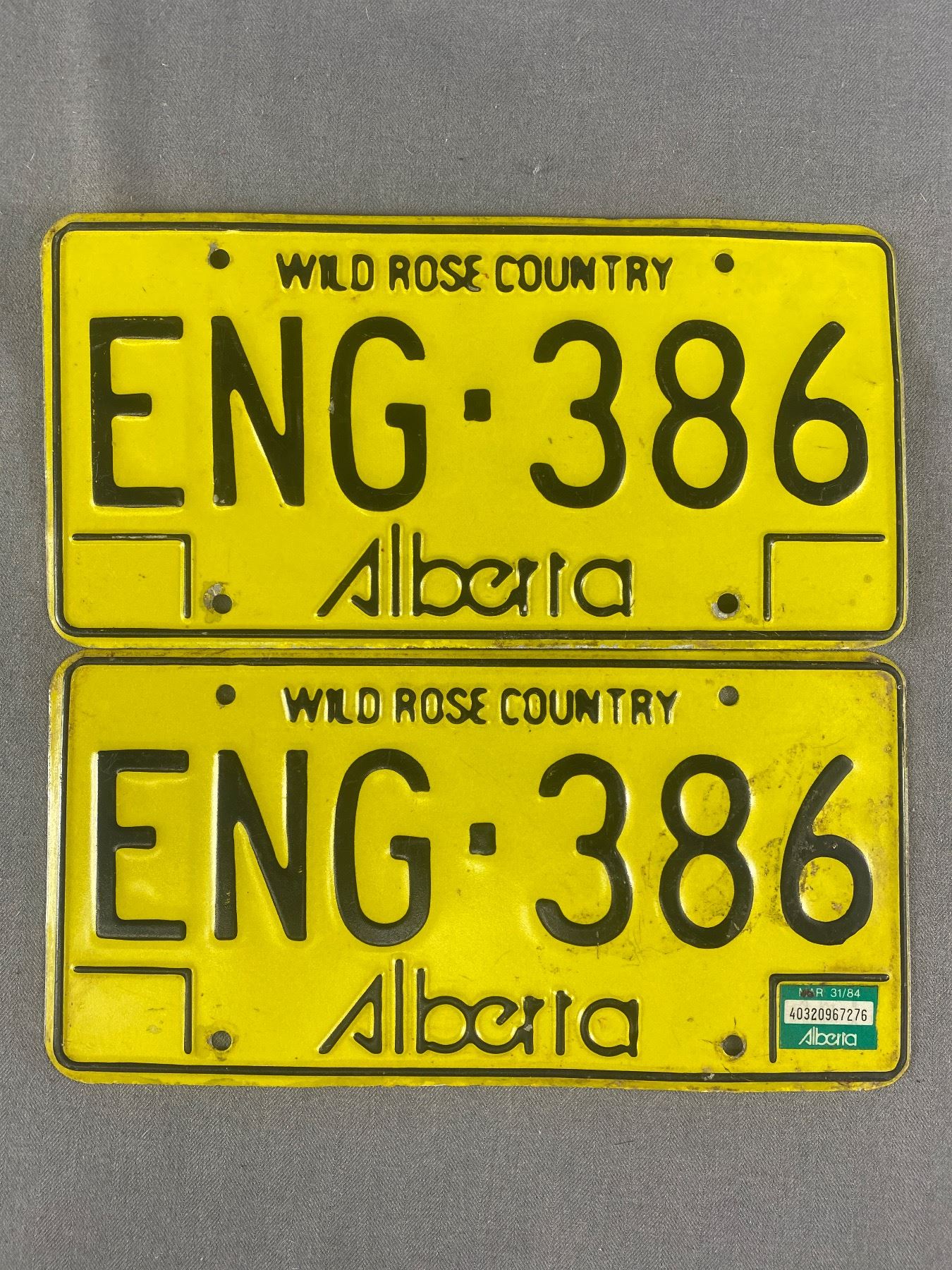 1984 Pair Of Alberta Wild Rose Country License Plates