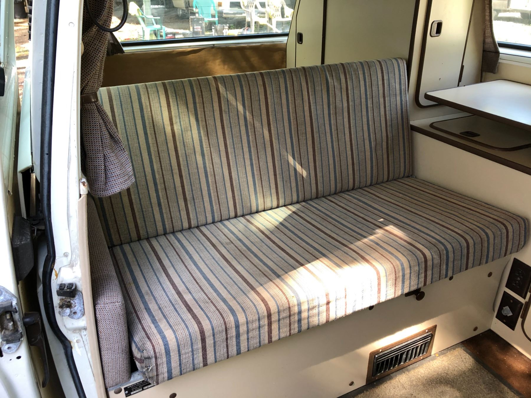 1984 VW WESTFALIA VANAGON, WHITE, VIN# WV27B0254EH083503, 466932KM, 4 SPEED MANUAL, POP UP TOP, SLEEPS 4, SWIVEL SEATS, STOVE, SINK, FRIDGE, (NAMED LUCY) SOME SURFACE RUST, CORROSION ON STOVE FRAME, ORIGINAL PAINT, STARTS EASILY, NO LIENS, DECLARATIONS $297.00 - *NANAIMO*