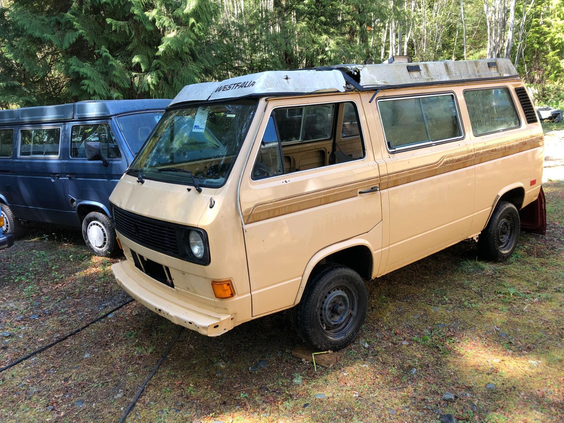 1985 VW PANEL VAN, BROWN, VIN# WV2YB0259FH022919 - NO MOTOR OR TRANSMISSION, STRAIGHT RUST FREE BODY, C/W REFRIGERATOR - PARTS ONLY - (NAMED PARIS) NO LIENS, *MUST TOW NOT ROADWORTHY/NOT SUITABLE FOR TRANSPORTATION* - *NANAIMO*