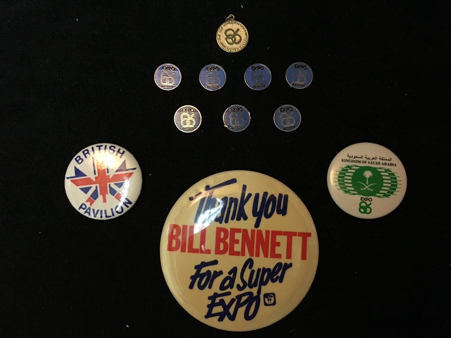 1986 EXPO BUTTONS AND SOUVENIR