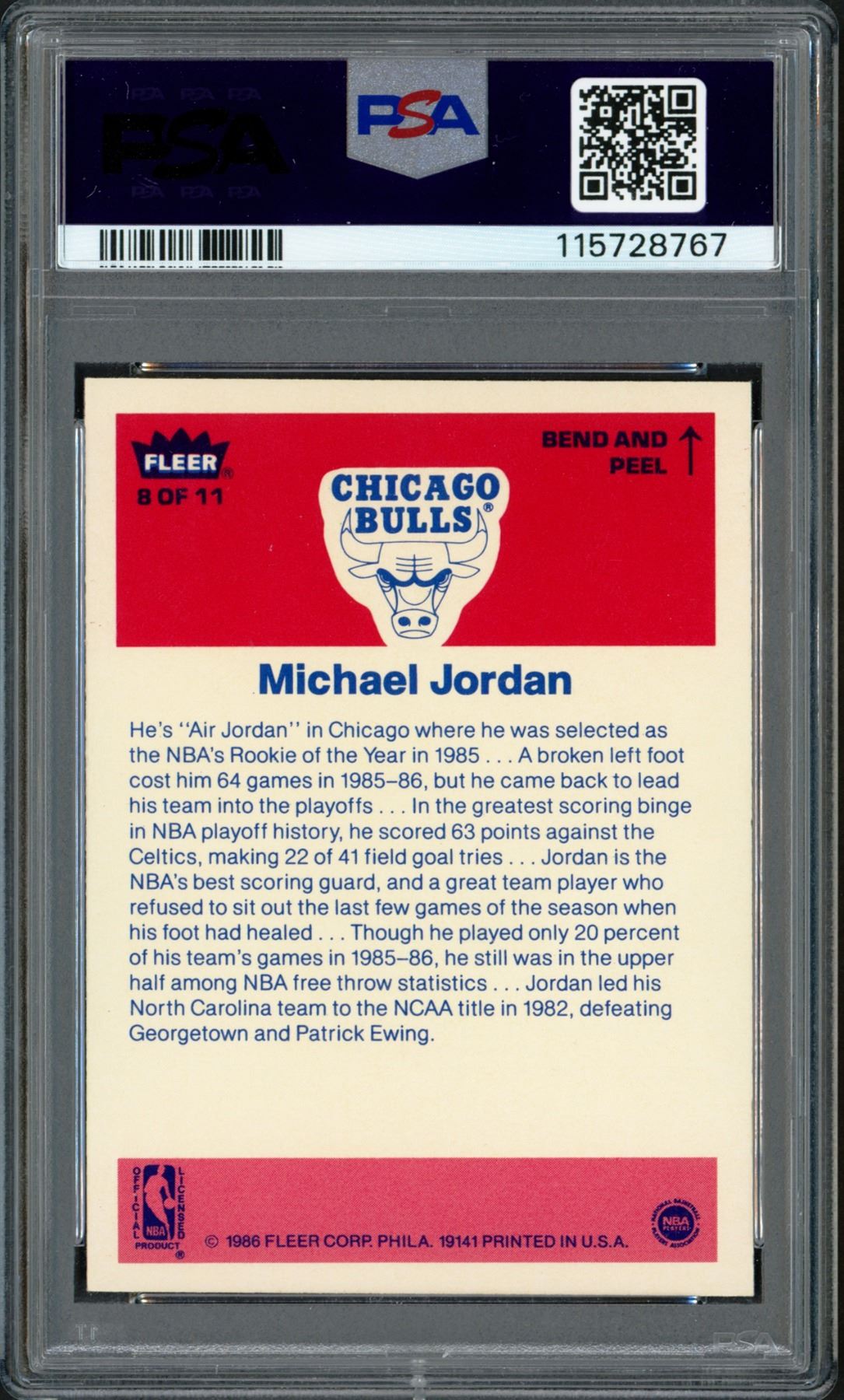 1986 FLEER MICHAEL JORDAN ROOKIE STICKER (PSA 6) - PSA GRADE 6