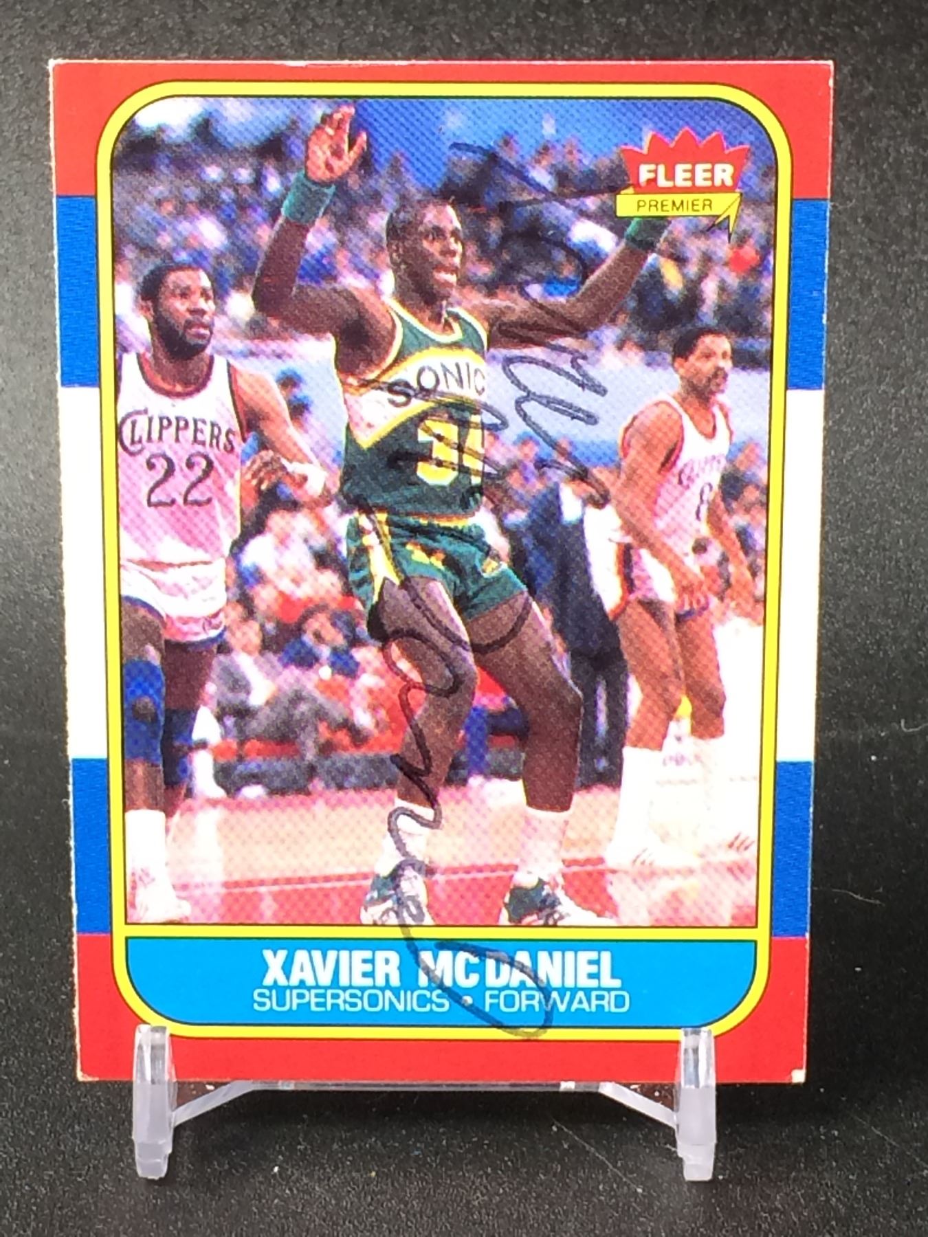 1986 FLEER NO. 72 XAVIER MCDANIEL AUTOGRAPHED ROOKIE CARD