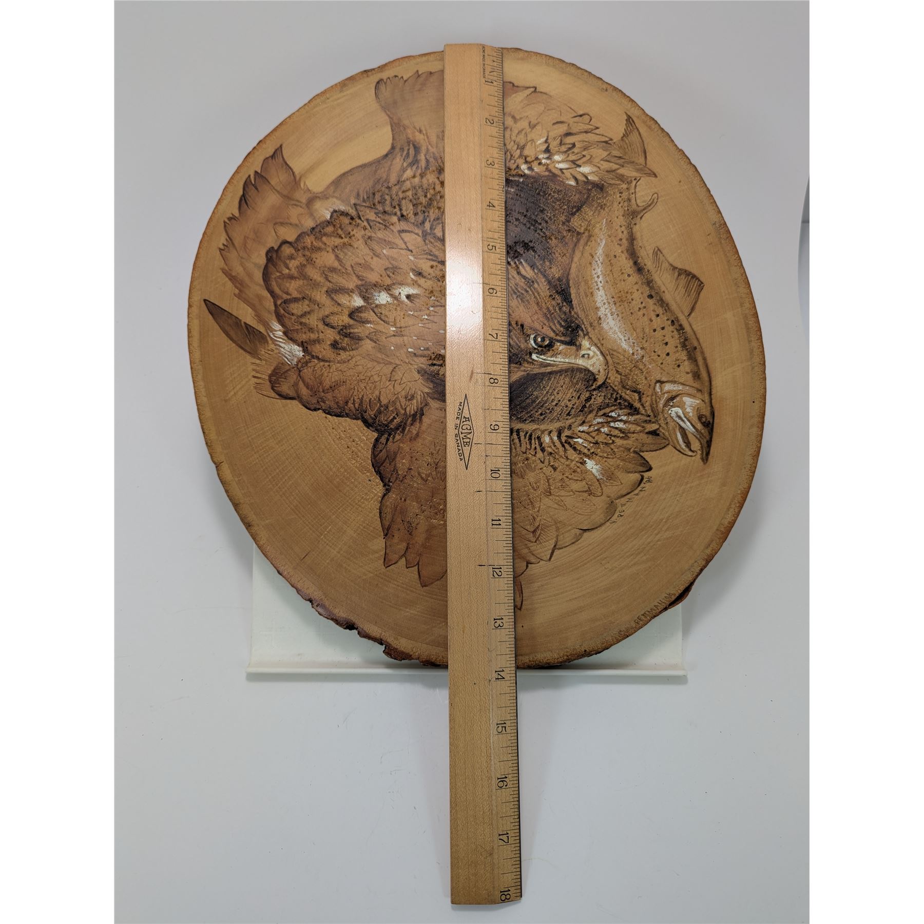 1986 INDIGENOUS 14" CROSSCUT~LIVE EDGE GOLDEN EAGLE & SALMON PAINTING by PETTMAN