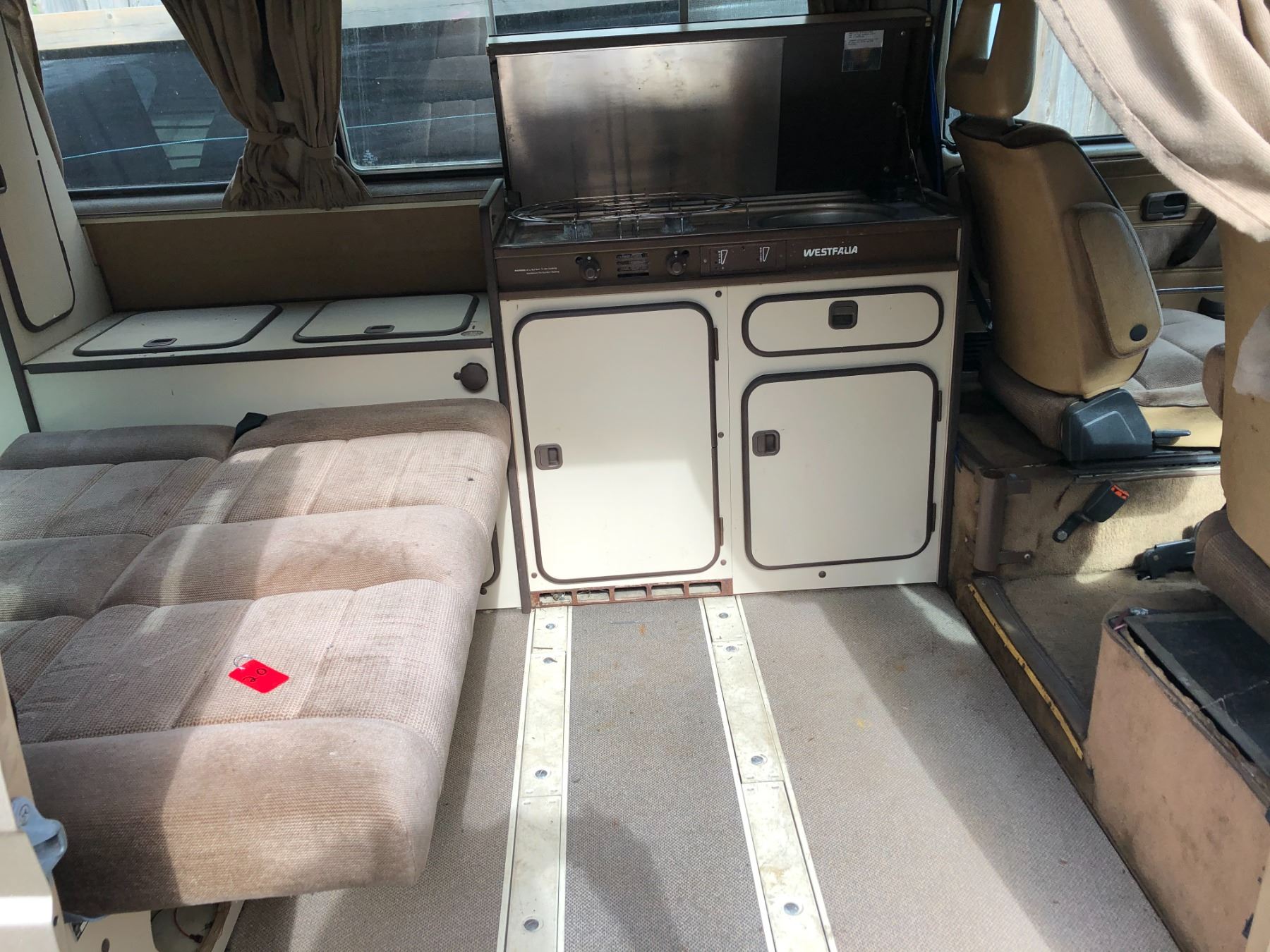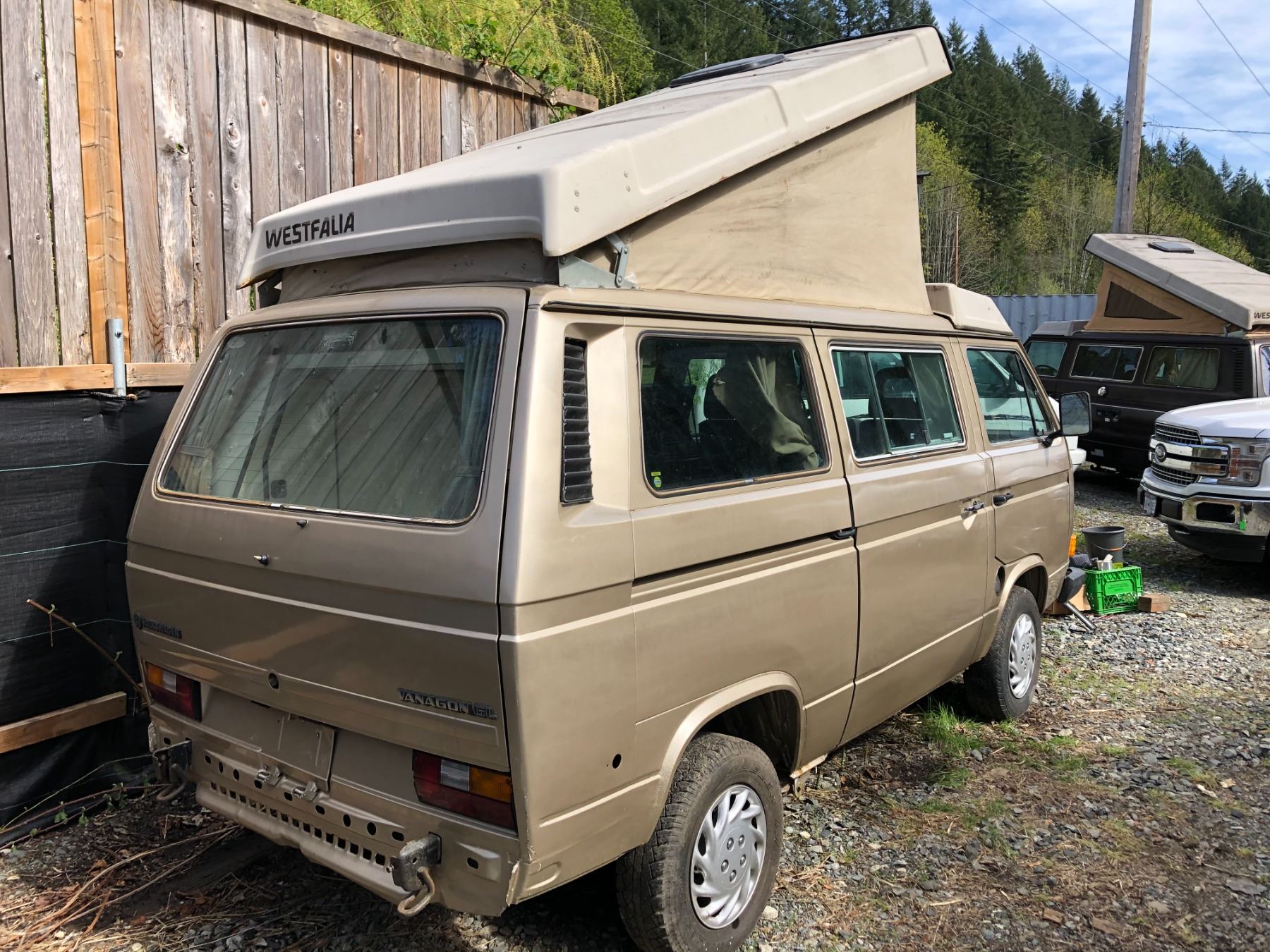 1986 VW WESTFALIA VANAGON GL FULL CAMPER, YELLOW, VIN# WV2ZB0252GH034223, 180484KM, RUST FREE BODY, NEEDS MOTOR & TRANSMISSION, READY FOR SUBARU UPGRADE (NAMED SUNSHINE) NO LIENS, DECLARATIONS $3,740.00 - *MUST TOW NOT ROADWORTHY/NOT SUITABLE FOR TRANSPORTATION* - *NANAIMO*