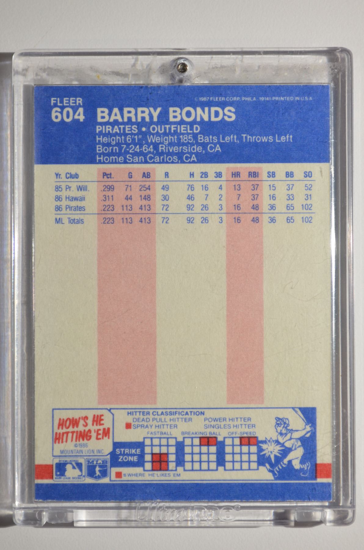 1987 Fleer #604 Barry Bonds RC