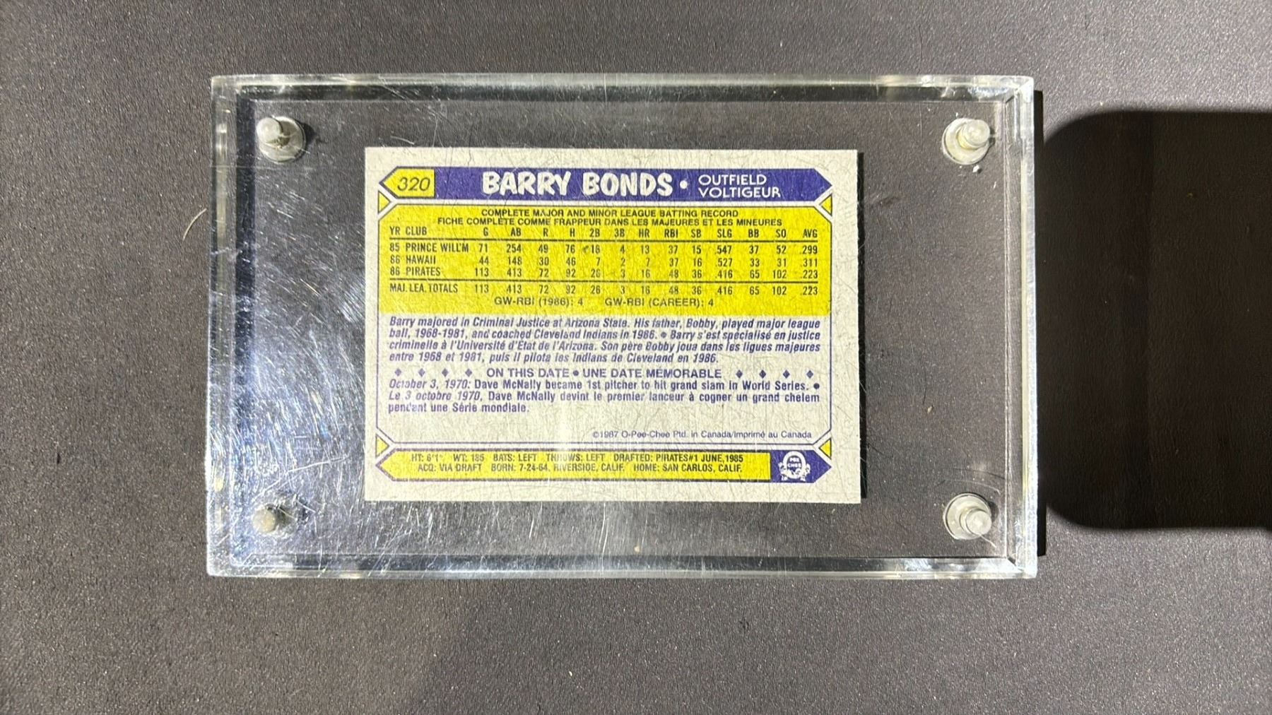 1987 O-PEE-CHEE BARRY BONDS ROOKIES #320