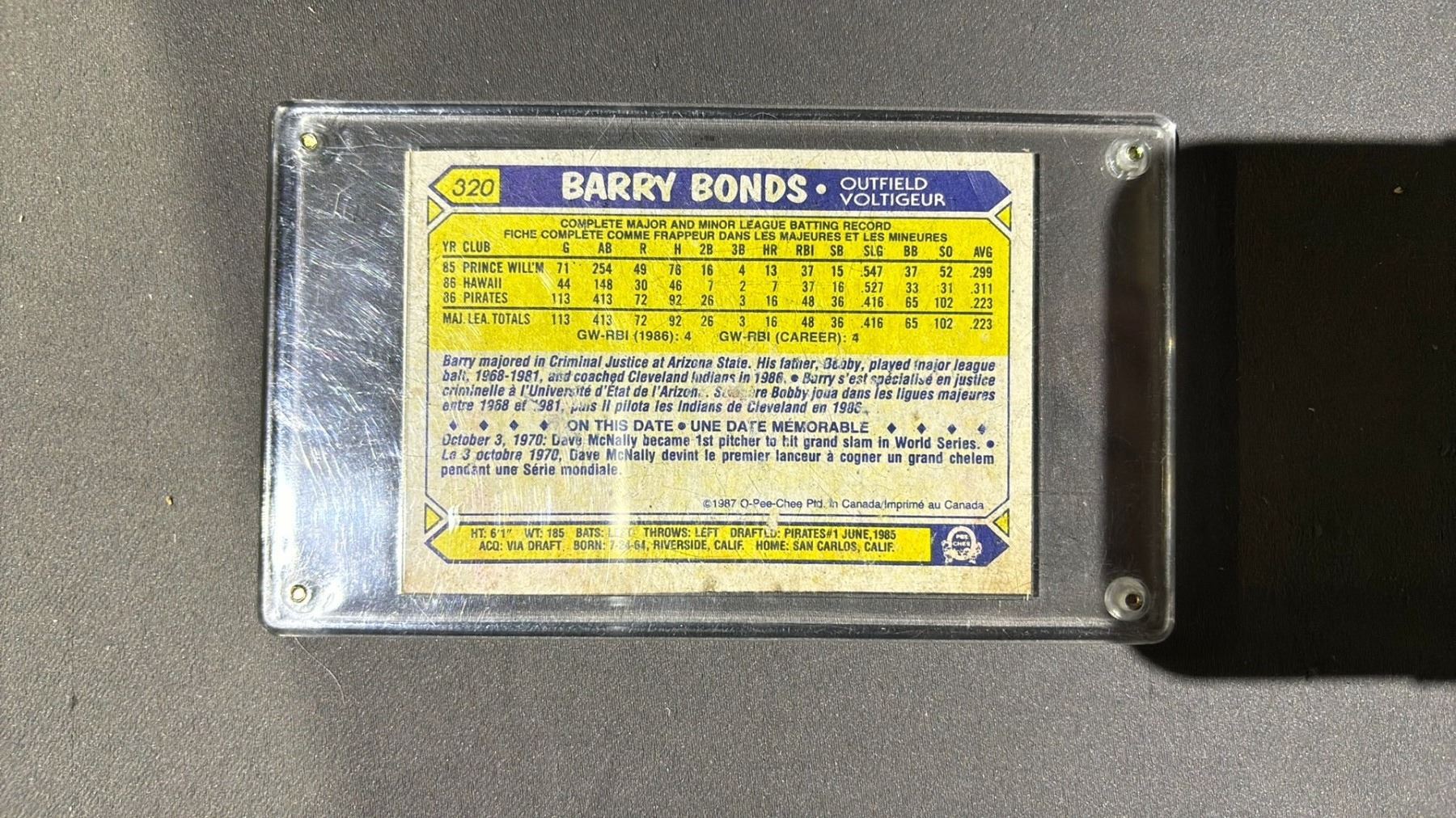 1987 O-PEE-CHEE BARRY BONDS ROOKIES #320