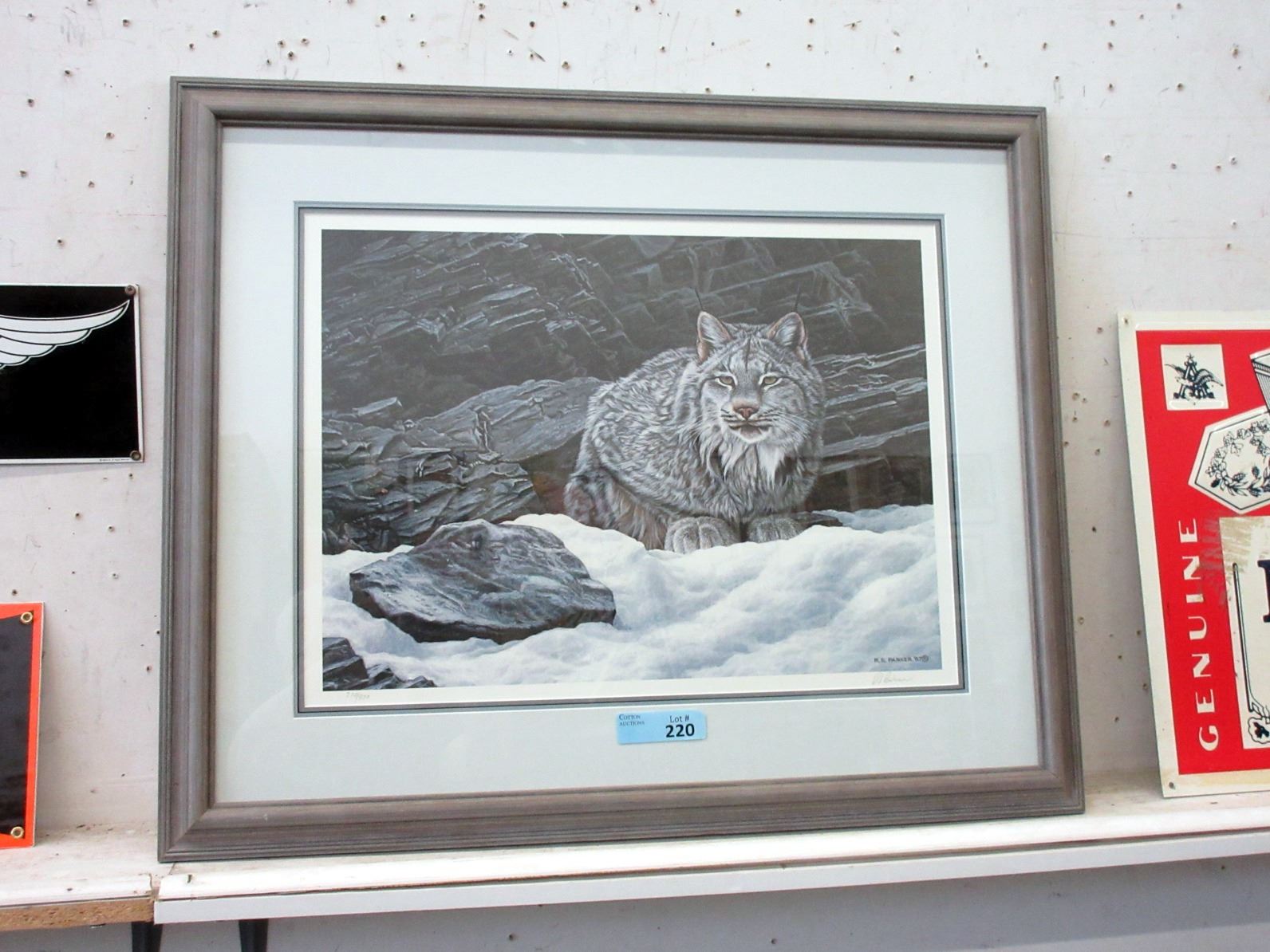 "Sheltered Spot - Lynx". Framed 31 x 25".