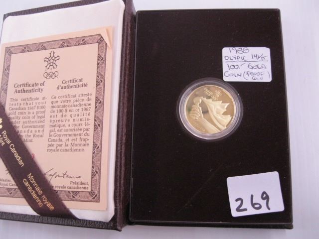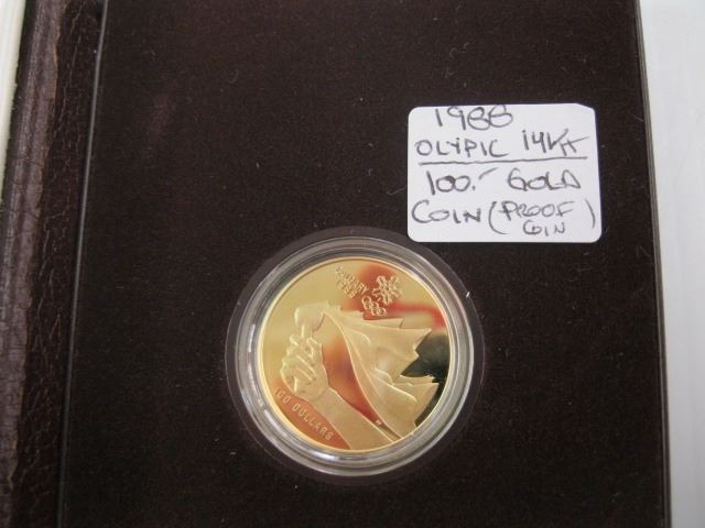 1988 OLYMPIC 14KT $100 GOLD COIN IN CASE
